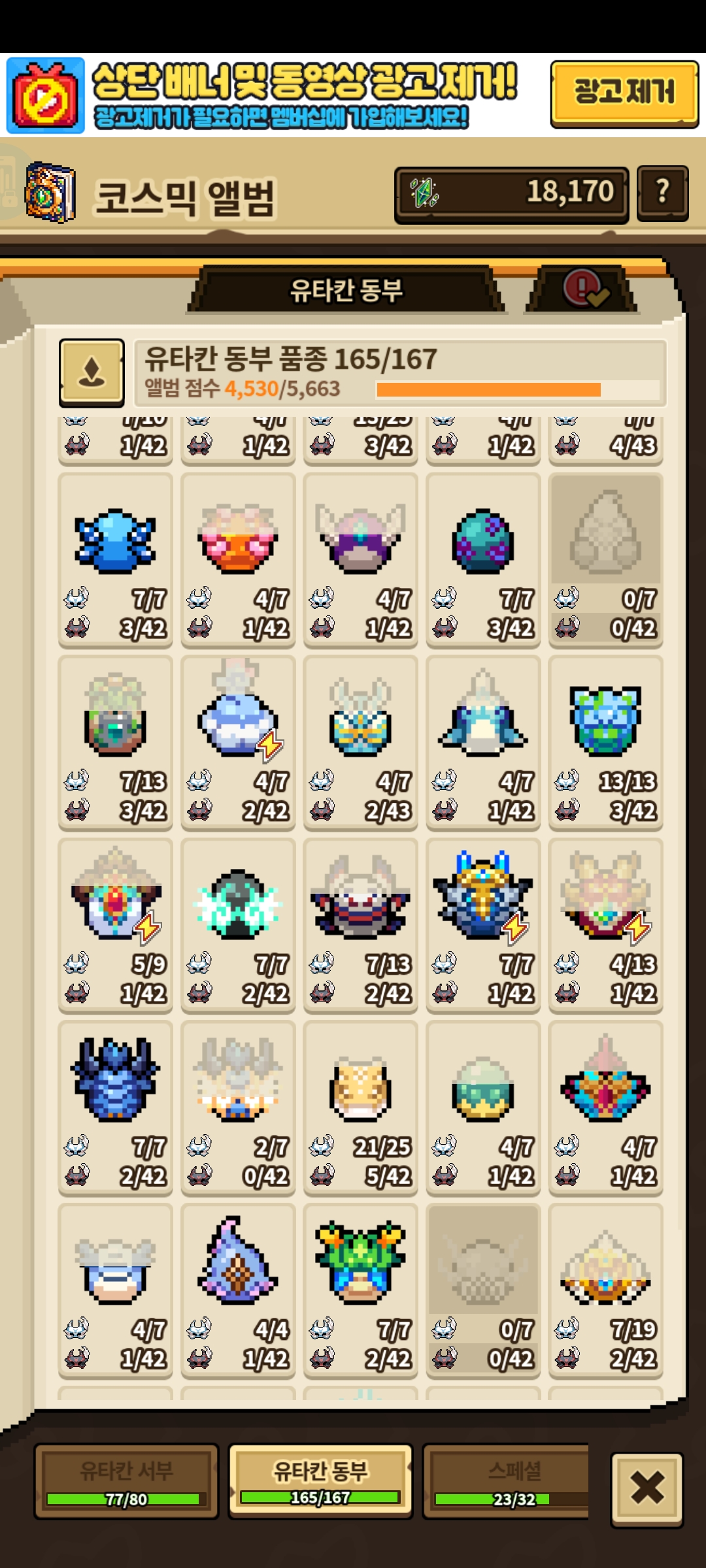 현재 습득불가인 화애칙만 빼면 동부 품종 올클...
