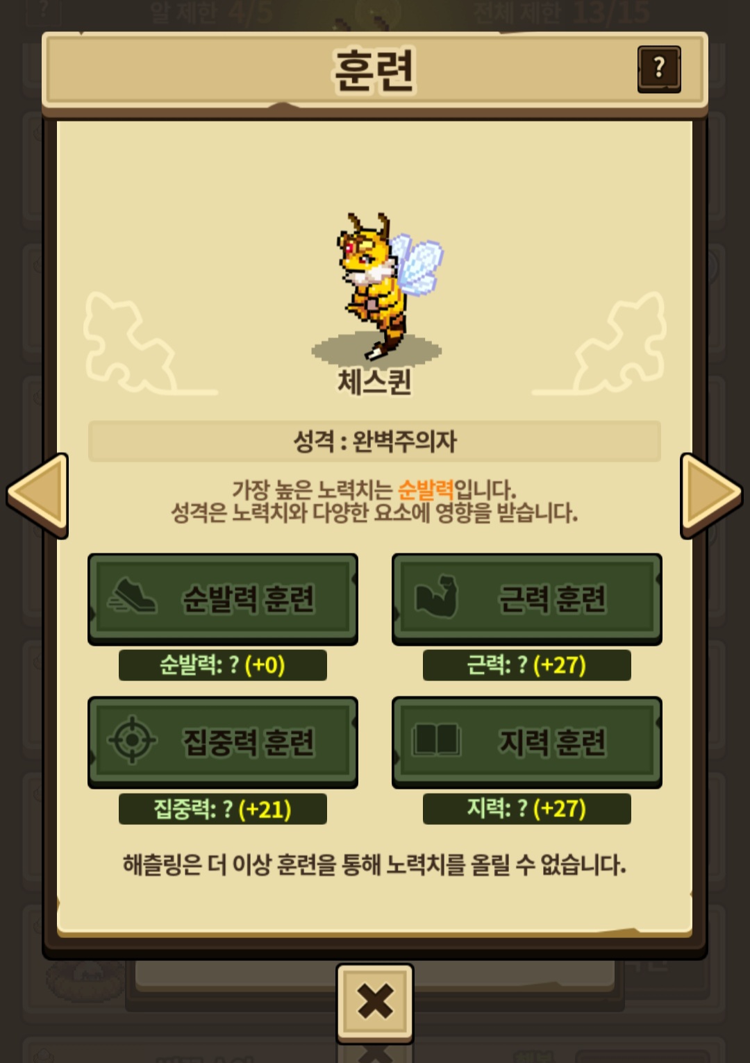 인섹퀸 초기 개체 눈치빠른 30 0 5 0 / 해츨링 진화 2일 18시간
