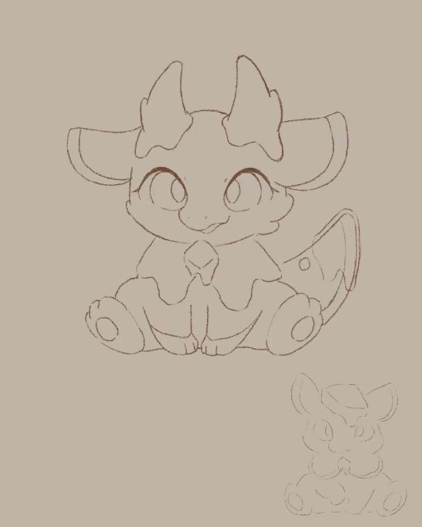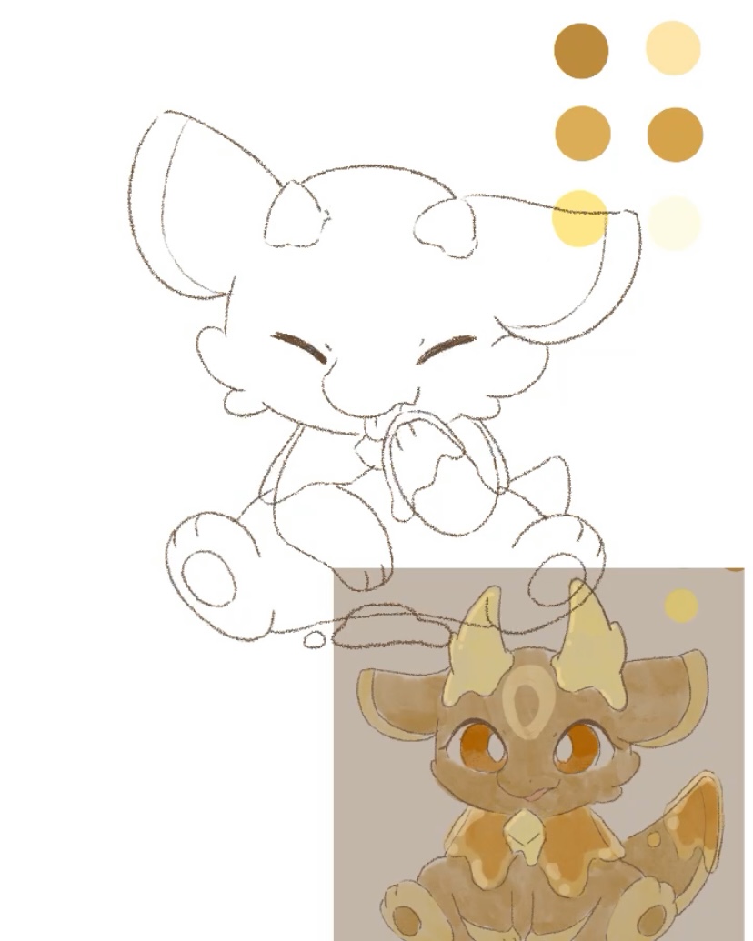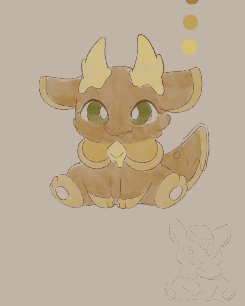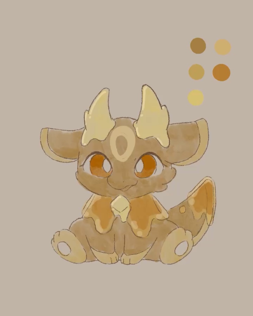 在這個階段的後來,我把尾巴修改成普通的龍尾,讓他更接近龍,而不是鬆餅本身,一部分也是因為如果尾巴是對折的鬆餅會很難呈現。