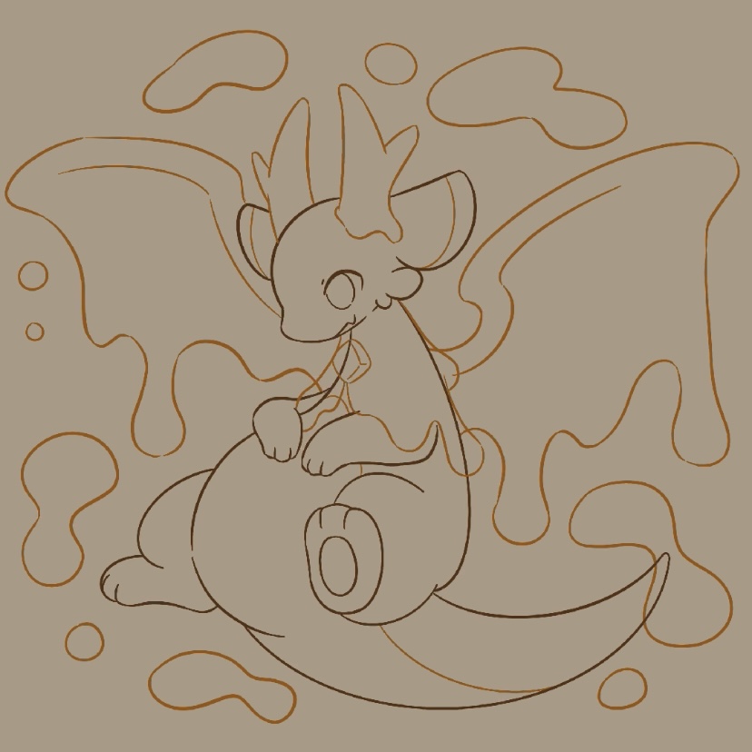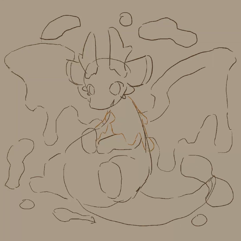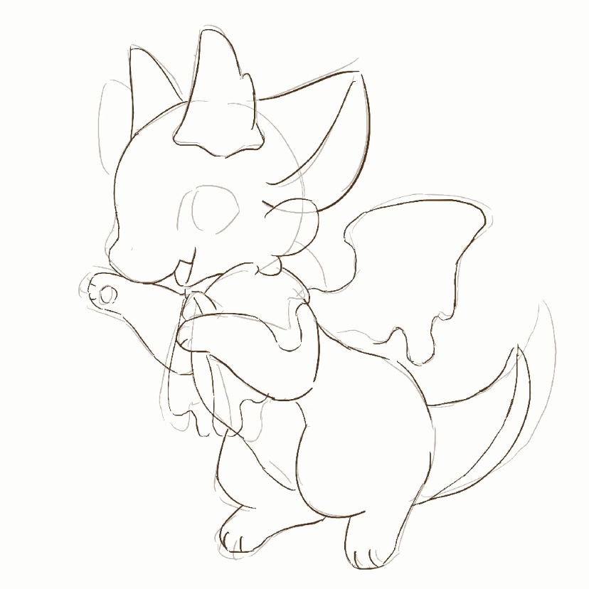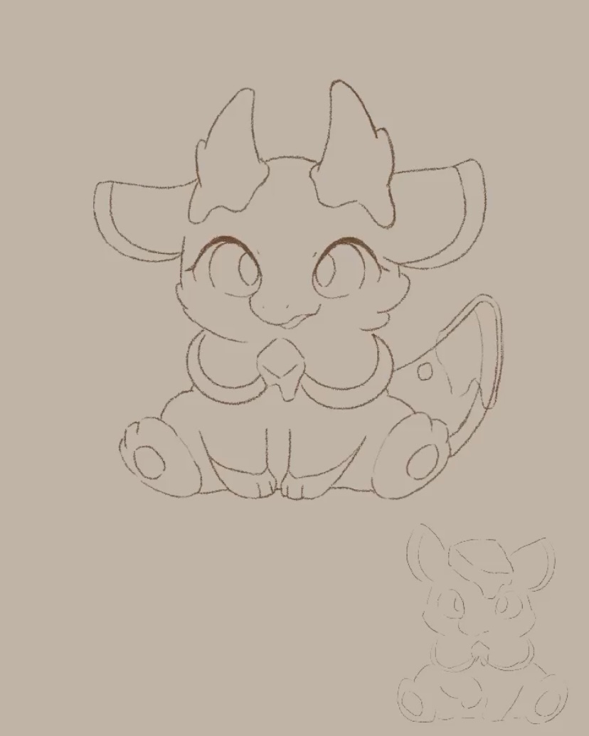 在這個階段的後來,我把尾巴修改成普通的龍尾,讓他更接近龍,而不是鬆餅本身,一部分也是因為如果尾巴是對折的鬆餅會很難呈現。