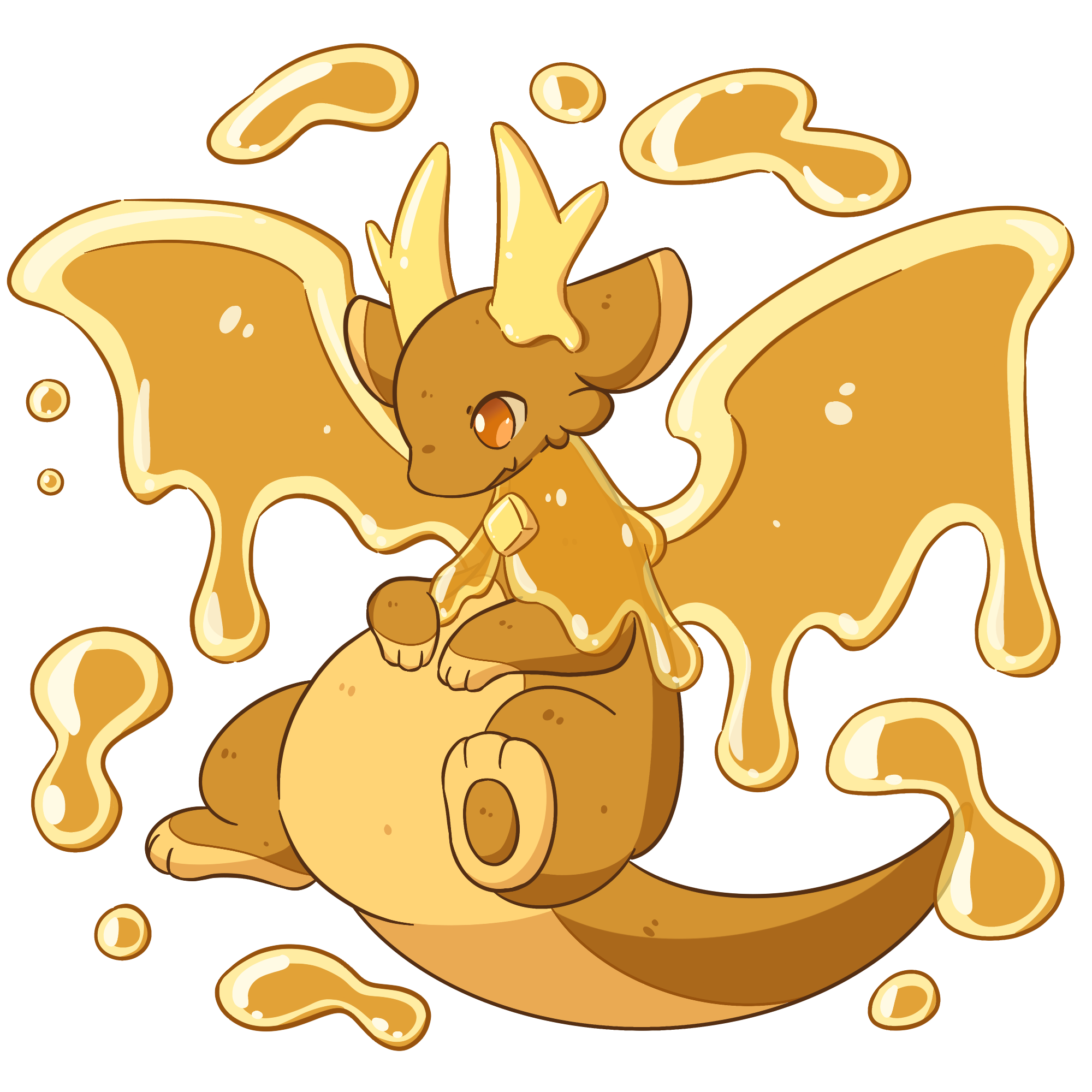也想著,龍都有翅膀,如果翅膀是鬆餅那就太沒有特色了,因此讓頸部的糖漿延伸變成翅膀!