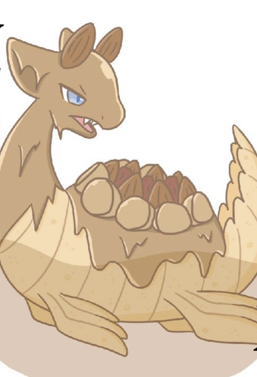 後來覺得鬆餅做的斗篷似乎有點無趣,因此把鬆餅換成糖漿了!整體設計也接近目前的鬆餅龍完成版。