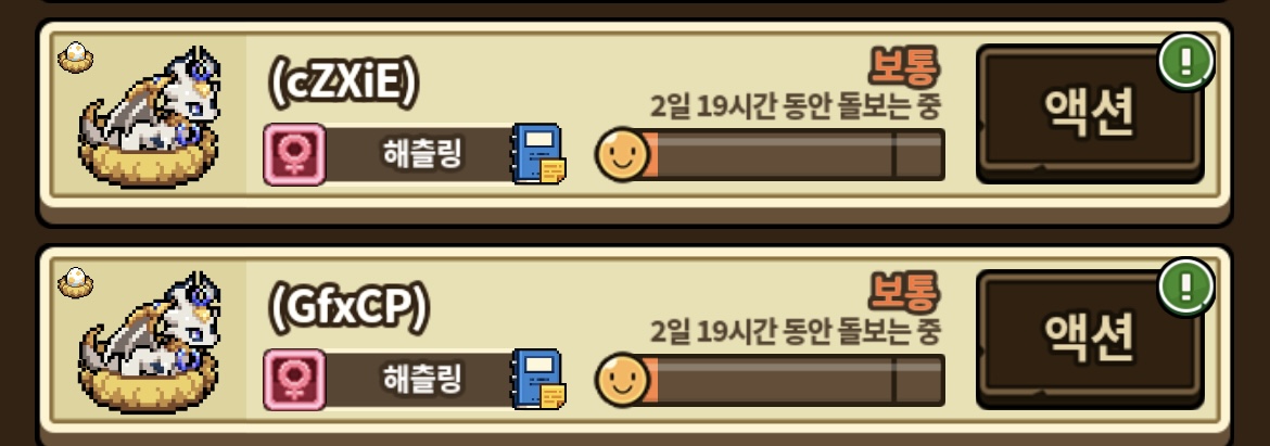 응애.. 길마님이 보내주신 루네라 성격작 꼭 성공하고 싶었는데 두마리 다 기본이 떠버린…