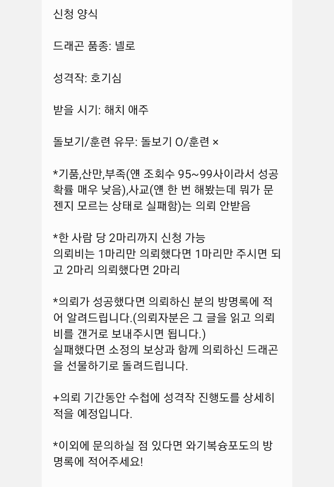 참고로 자신이 보유한 드래곤을 제게 보내주셔야 합니다.