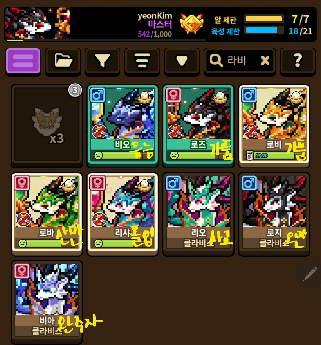 로바(클로버 여아)빼고 다 목표했던 성격 제대로 나왔고..