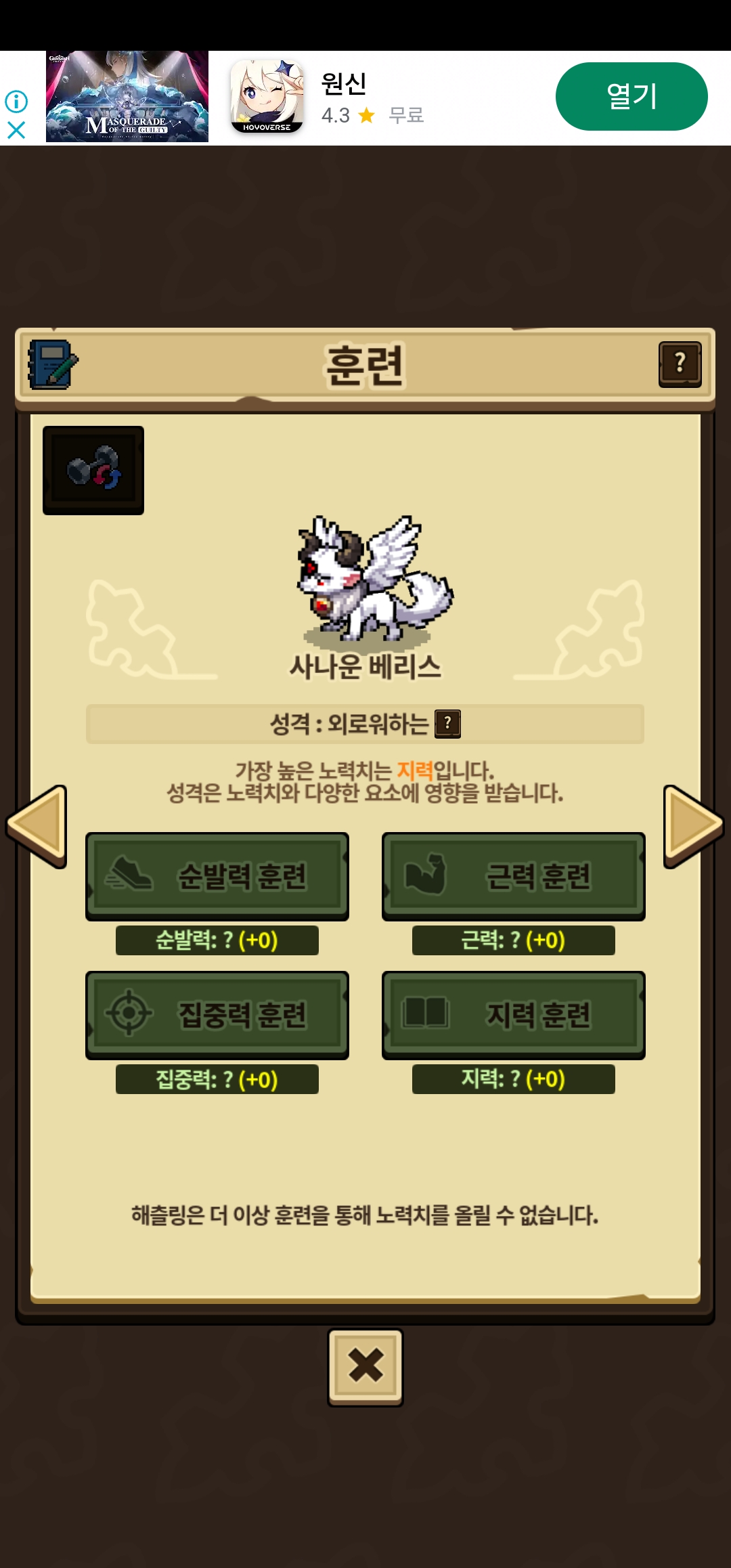 훈련 12번만 해서 다 17은 맞췄는데 돌보기도 챙겨야 하는줄 몰라서 망함