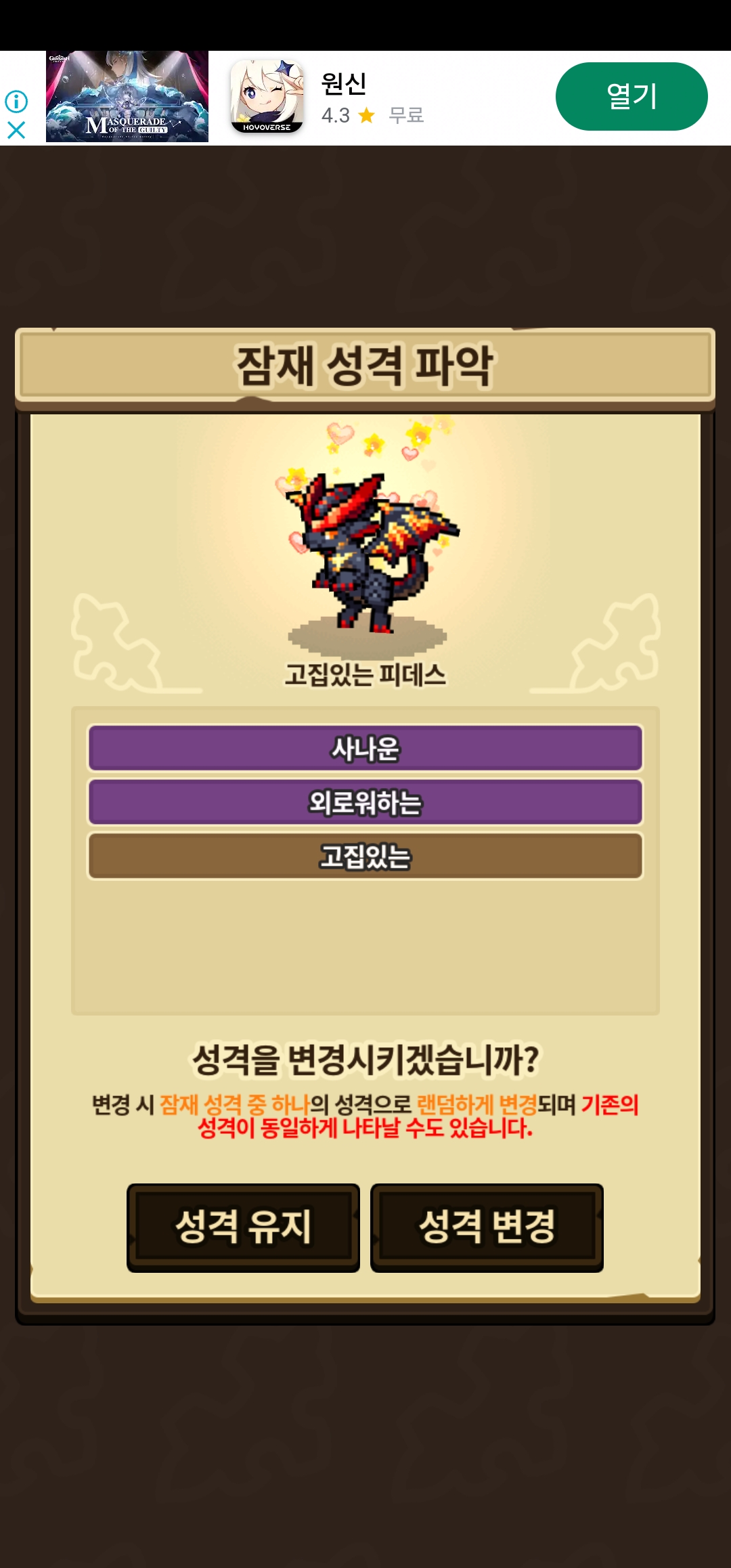 사나운 태워놓고 성격 변경 누르면 고집으로 바끼는줄 알고 유지 눌렀다가 고집 고정 당함