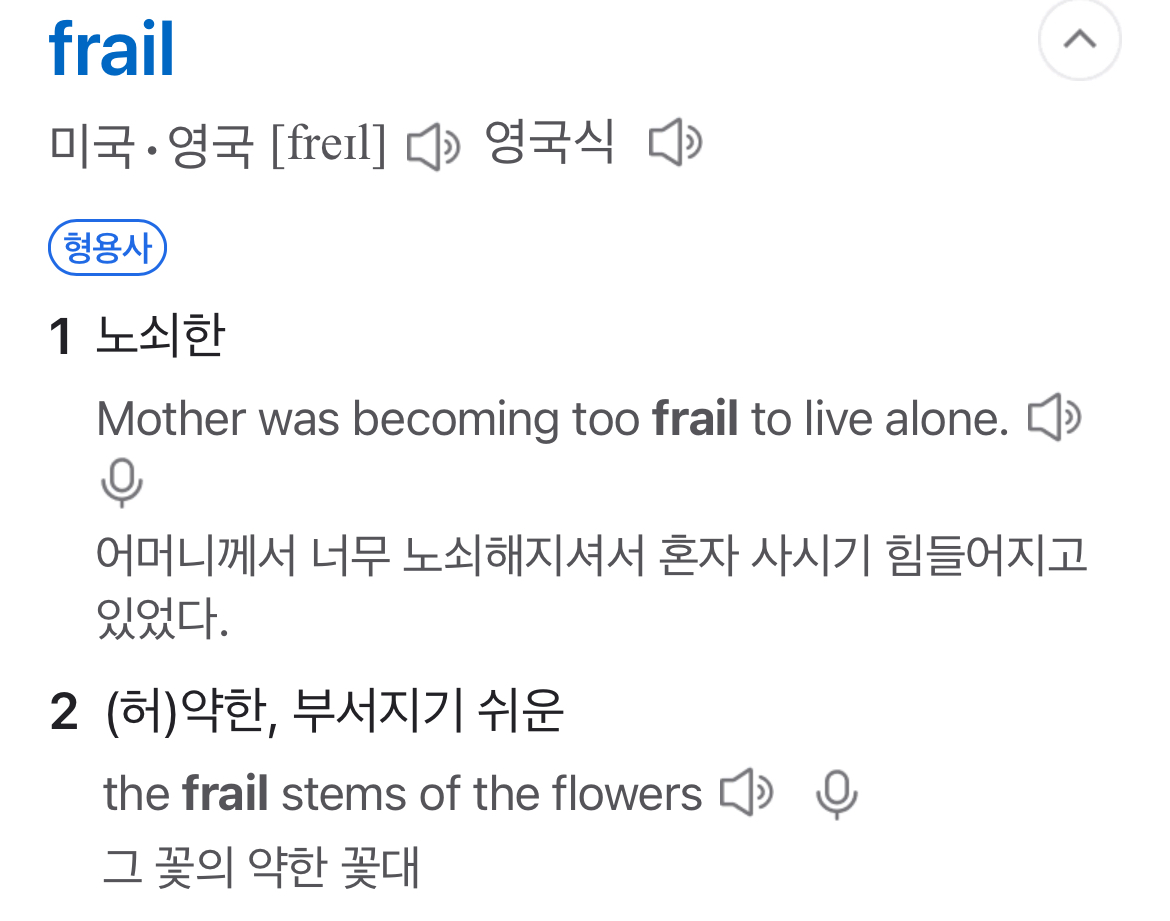 Frail의 뜻은 노쇠한,허약한이라는 뜻