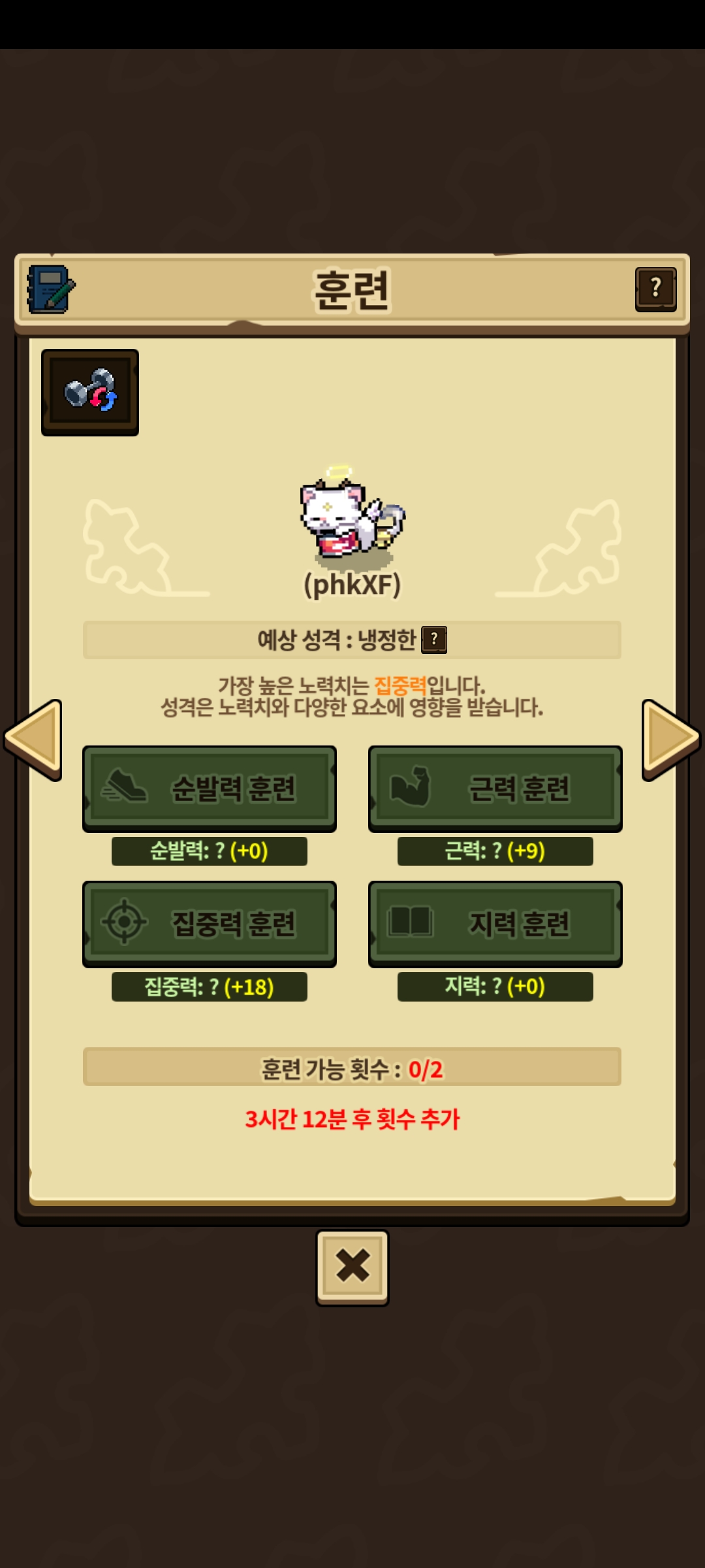 초기 알 온순한에서 냉정한으로 바뀌었는데 어떤 훈련치를 올려야 되는지 궁금합니다..
