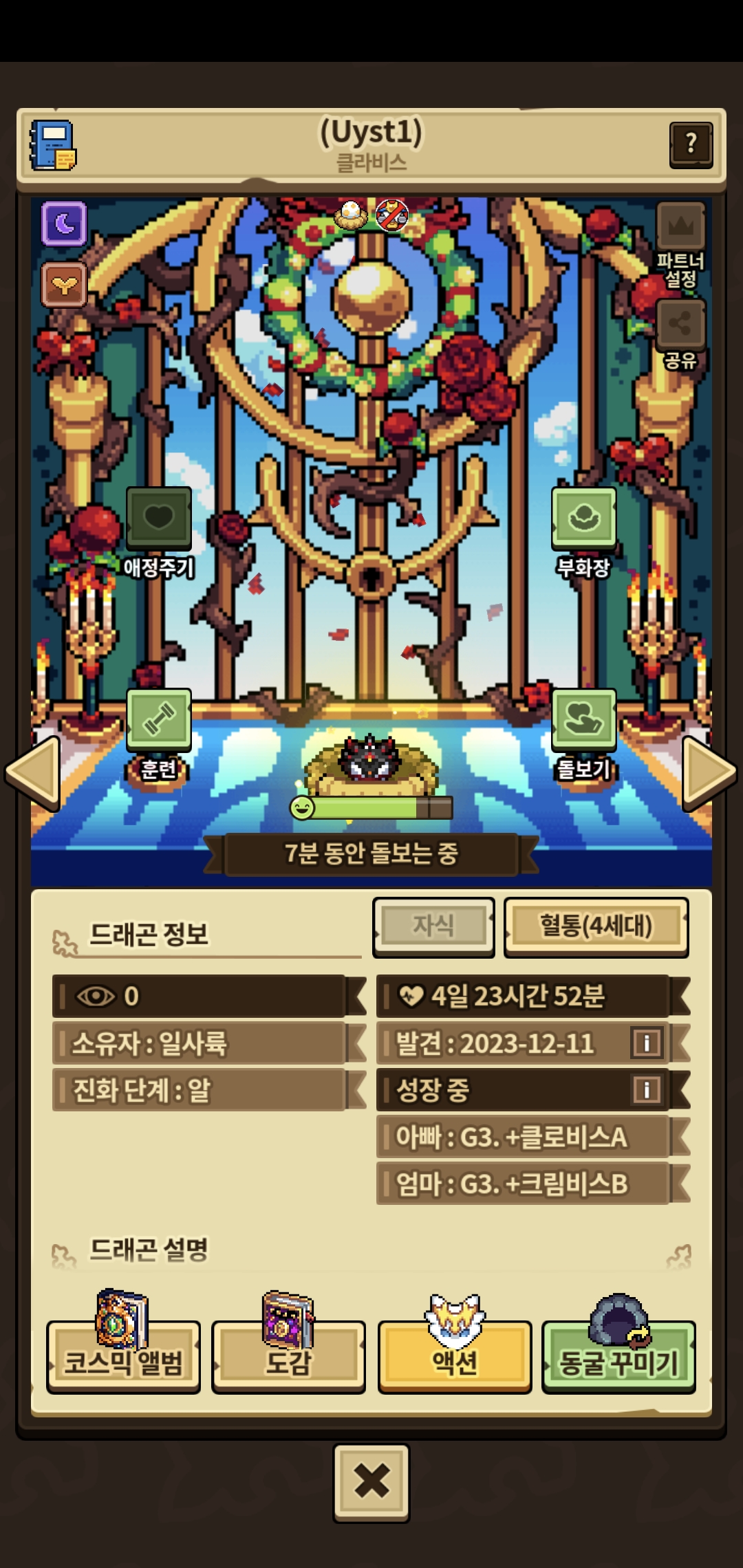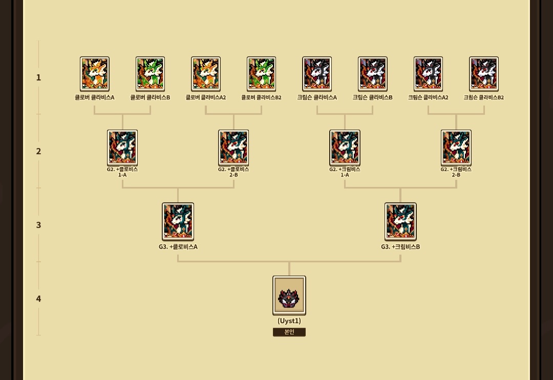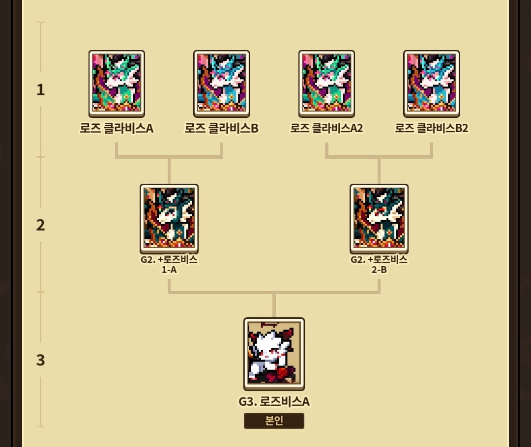 어쩌다보니 8쌍 모두 2세대까지는 성비 딱딱 맞춰서 나왔어요! 그중에서 제일 성장 빨랐던 클로버&붉은장미 직계 후손 크리스마스 클라비스,,, 기특하게도 4세대까지 크리스마스 분위기를 이어줬네요🥹
