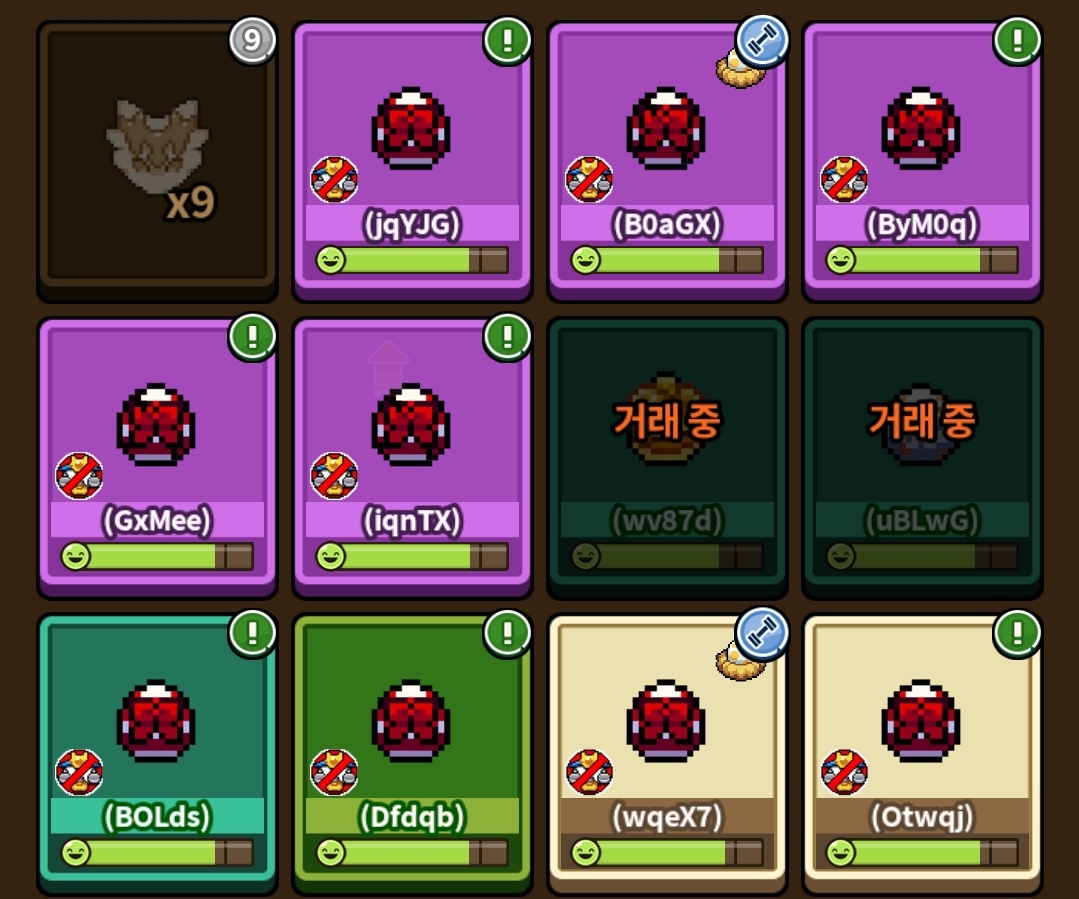파란 아이콘 떠있는 애들이 각각 성탄하고 따뜻?나온 애들 심지어 빛 타입만 희귀성격 뜸