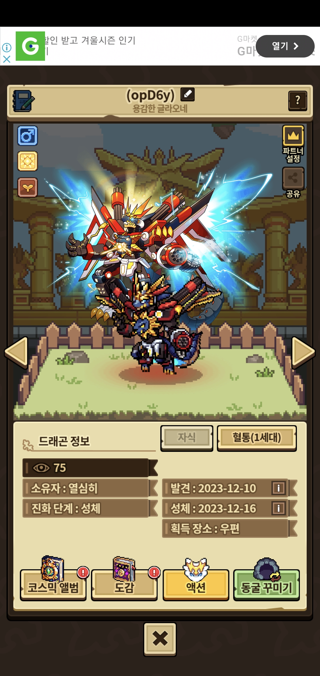 외형이 제 스타일이여서 얻고싶었는데 얻어서 성체로 성장했네요 요즘 드빌컬을 안 해서 성격작을 안 했지만 그래도 멋진거 같아요
