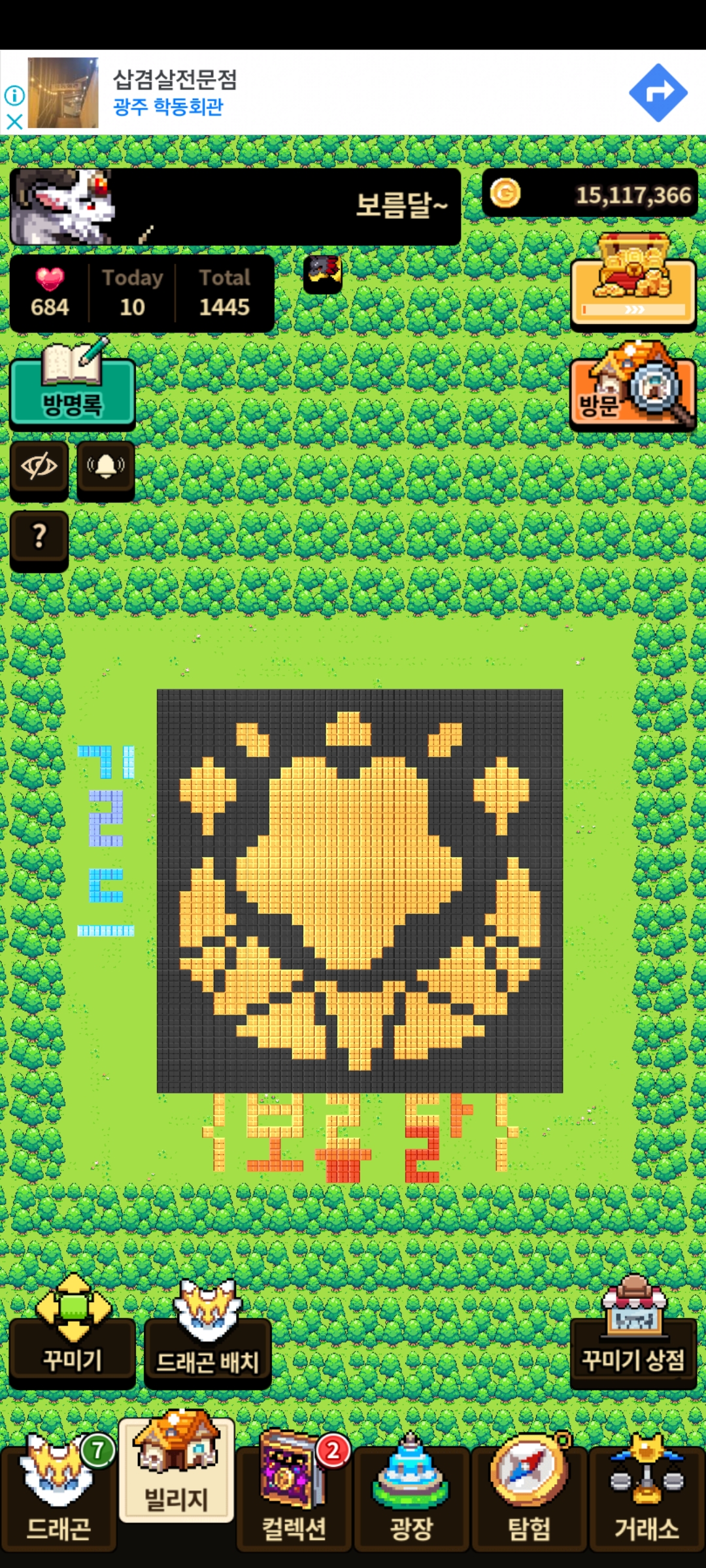 길드 홍보도 할겸 빌리지에 저희 길드 마크를 만들어 보았습니다! 아랫부분이 제일 힘들었어요 ㅠㅠ