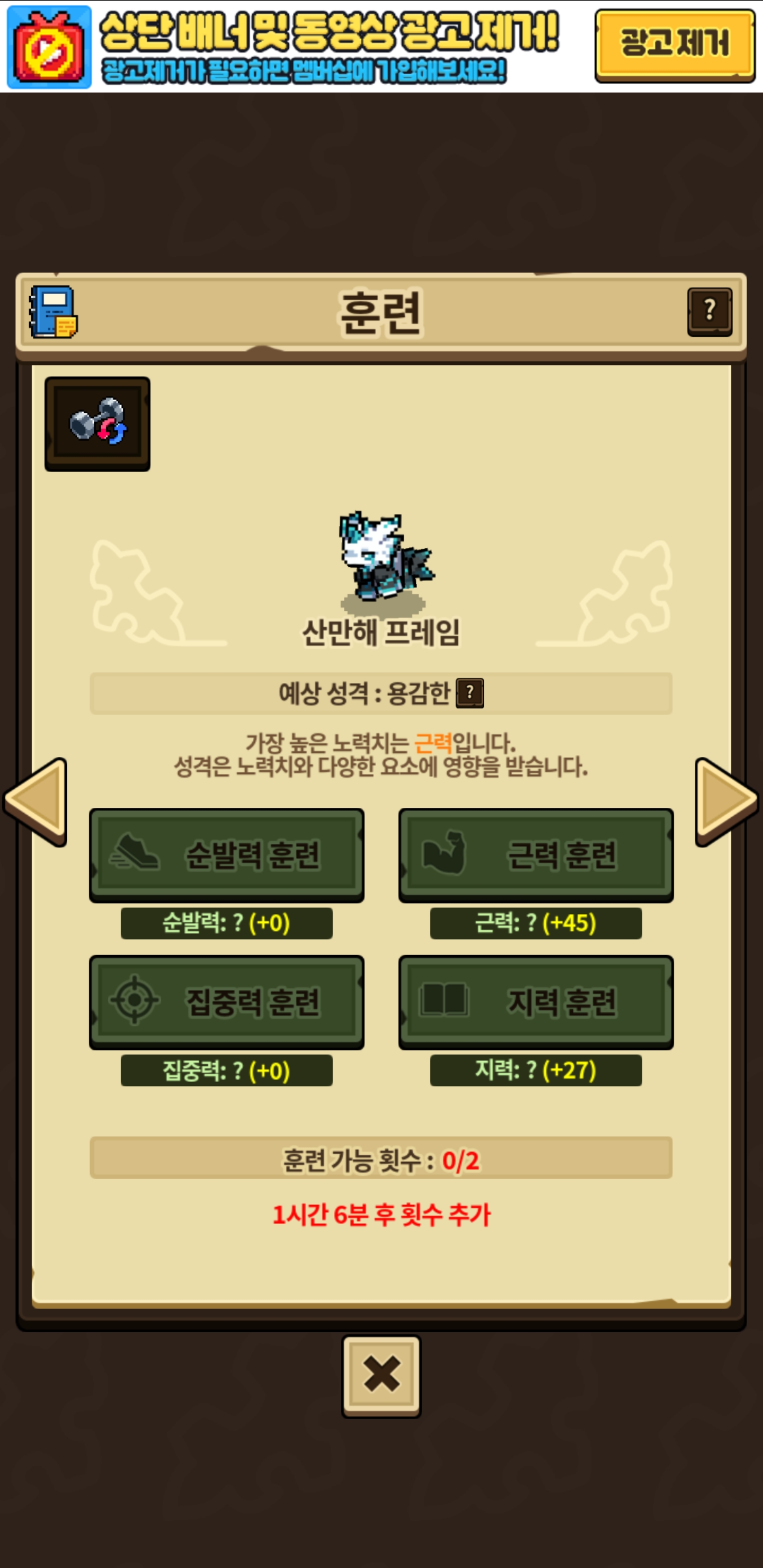 보호소에서 주웠을땐 지력이 올려진 상태였고 온순한 성격이었어요! 근력만 올리면 되는것 같은데 이게 맞을까요? 혹시 지력도 더 올려야 하나..?