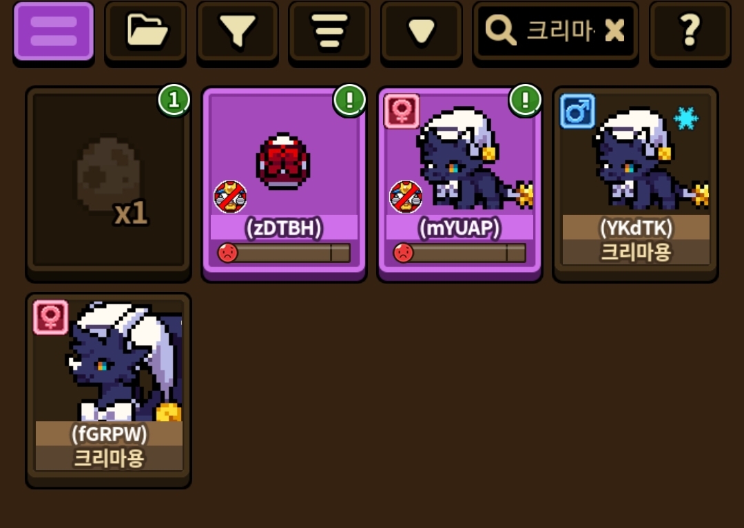 크리마용 고요밤 외형 한 쌍 둘 다 정확한 지력에섭 빵꾸나서 실패 ~~ 남자애 정확 성공할까봐 저 암컷으로 뜬 애는 외향으로 해놈.. (알이였는데 접속하니까 암컷으로 부화했더라)ㅎㅏ.. 글구 저 알은 빛 캐럴임.. ㅎㅏㅏ… 근데 아니 나 수컷 원한다고 아니 왜 암컷만 뜨는디..;; 수컷 파티 맨날 열었잖아.. 종은 다 다른데 수컷만 잔뜩 나오고 그런 적 있잖음.. (지금도 그럼..) 근데 왜 암컷이 나오냐거 미트라는 수컷만 떠서 암컷 빌닉가 암컷 잘만 뜨더니만 너 미트라한테 옮았니?