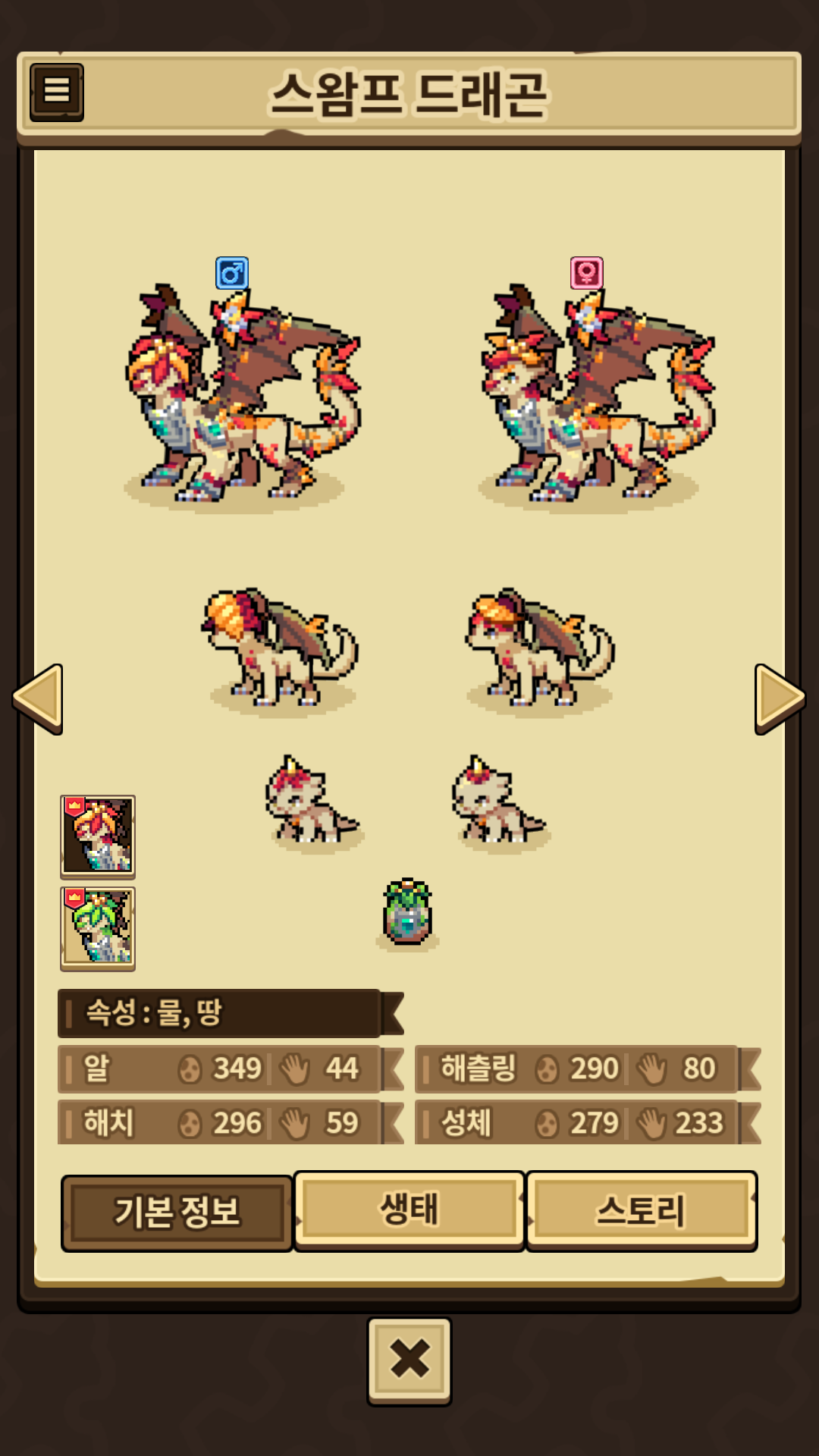 9월 22일~12월 20일, 가을 기간 동안 얻을 수 있는 단풍 스왐프 외형(사진 상 위의 주황색 외형)의 스왐프 드래곤을 얻을 수 있는 시간이 하루 남은 것으로 예상 되어집니다!