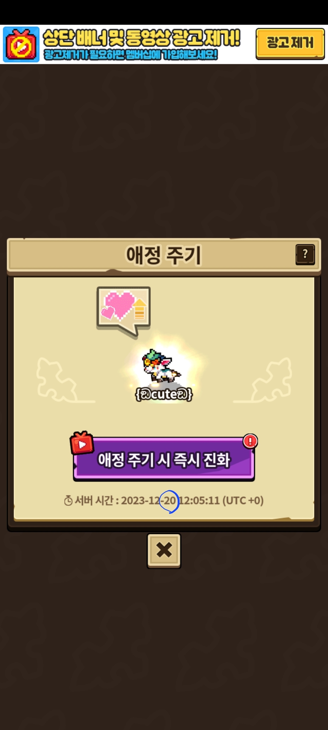 지금 동그라미 친 시간에 진화하나요?
