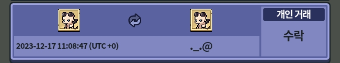 커뮤니티에 순2 강강 or 순2 술래 성별교환 구한다고 떠서 들어갔었는데.. 강강은 성별이 같고 술래는 마침 암컷이 있어서 외향하던 수컷이랑 교환을 했단 말이죠.. 근데 제 암컷이 여명중이여서 여명 원한다구 머 어쩌구 그랬었는데.. 그분이 가진 술래 2마리중에 하나는 외향 하던 거, 하나는 조용 하던 거라고 했었는데.. 줬을 때 조회수가 101이였던 걸 보면 외향하다가 말았던 애 같아요. 저는 외향 완료한 줄 알고 뜰까봐 불안했었네요. 아무튼.. 그분이 여명 완료했다면서 거래 요청을 보내시더라구요.. 그래서 저는 아무 생각없이 거래 했죠.. 근데 2일 전에 진화했는데 변덕이 뜬 거에오.. 그래서 오늘 게이지 겨우 찬 루네라로 돌렸는데.. 기대했더니 아예 아무것도 없네요… 커뮤니티 게시글은 꽤나 최근인데 보이지도 않고 삭제한 걸까요. 거래내역과 루네라 내역밖에 없네요…