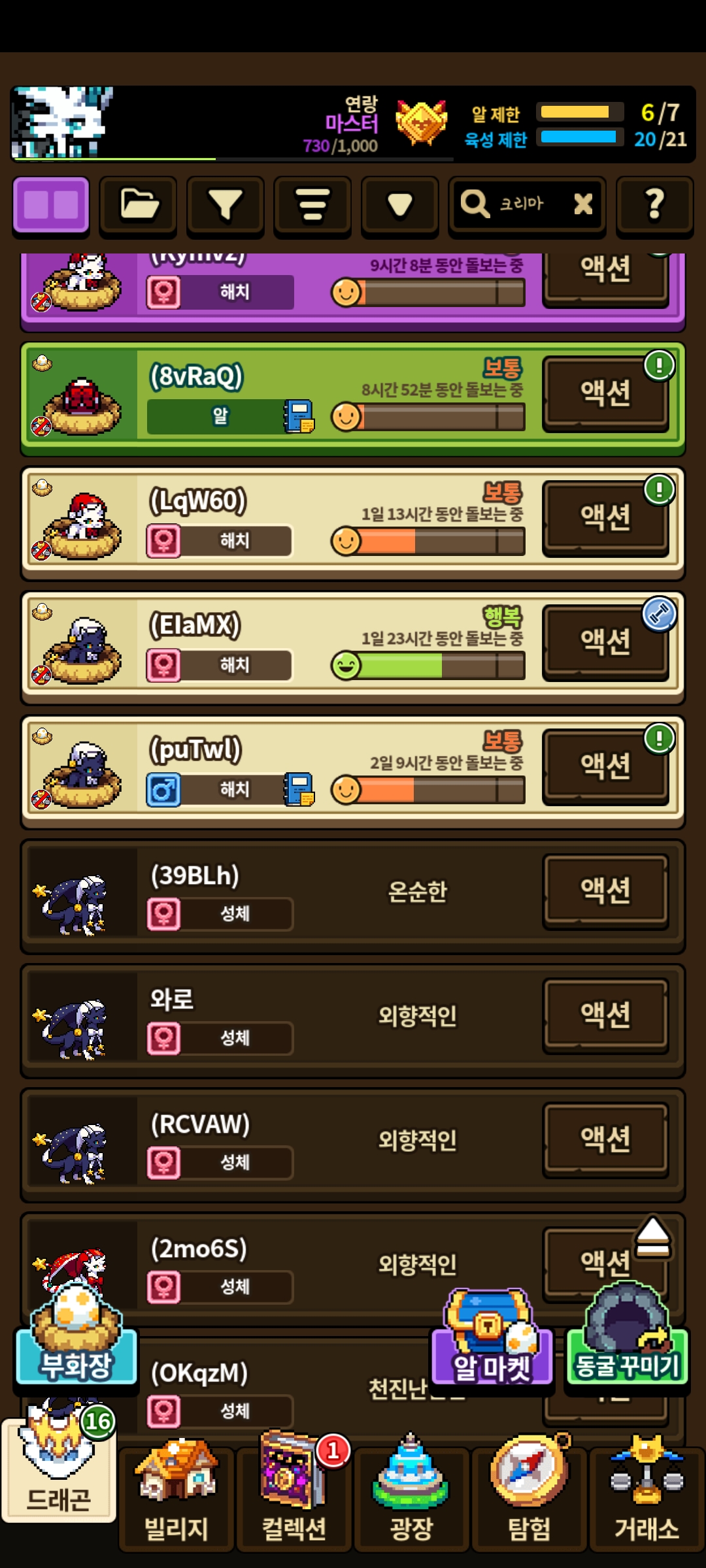 어떻게 천장 쳐가지고 받은 수컷 빼고는 다 암컷만 나오죠…수컷이 안나와요..