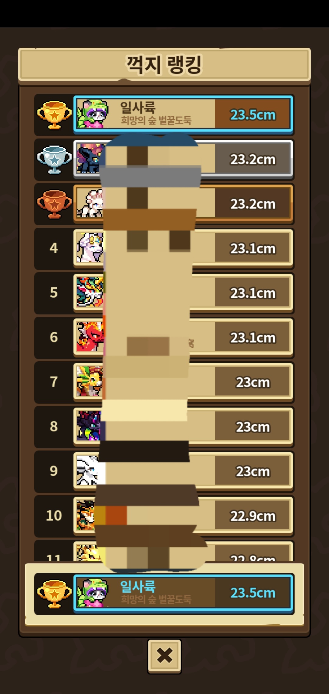 컨텐츠 업뎃 된지 얼마 안 돼서 금방 추월당하겠지만 꺽지 랭킹 1위 잡았어요~