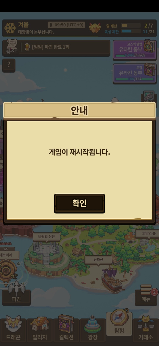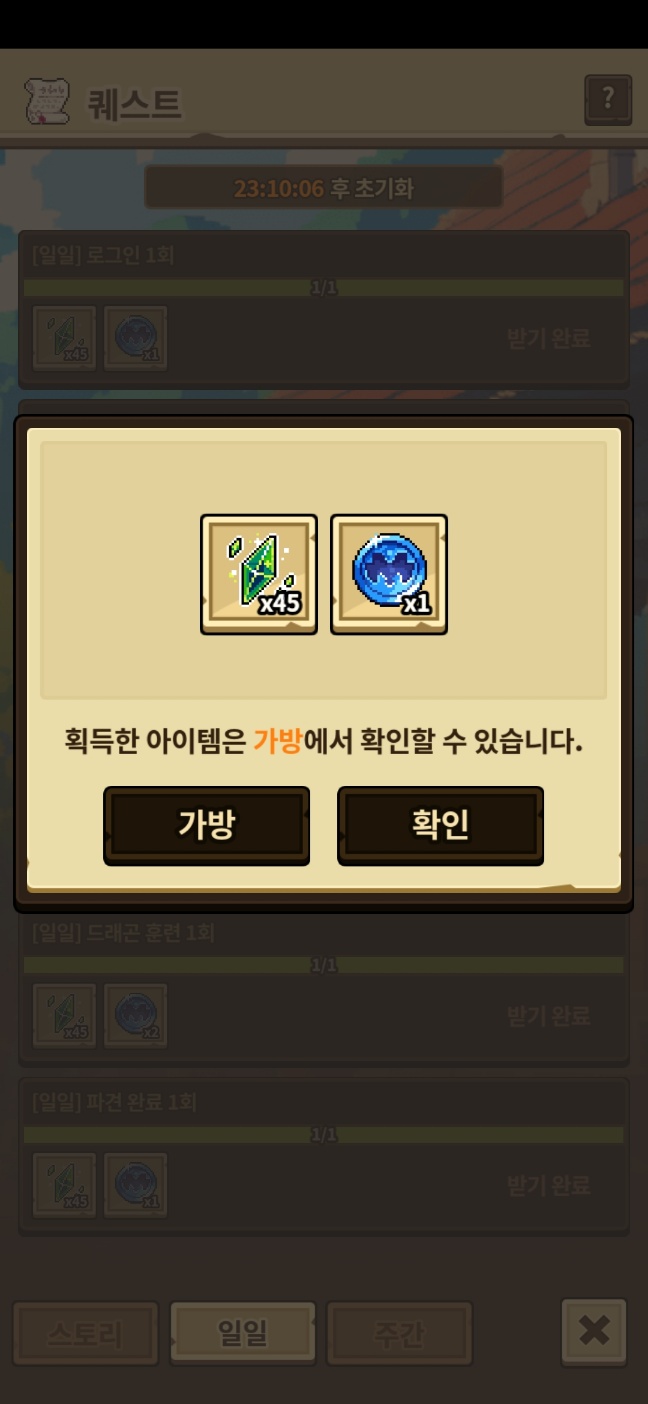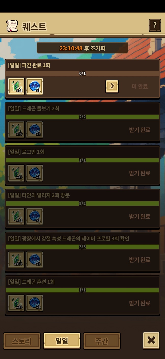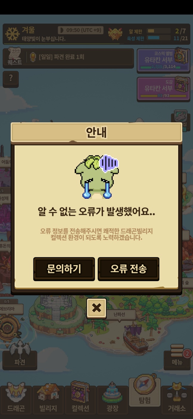 제가 메인퀘스트 다 밀어둔 상태고 어제 주간퀘스트 보상 받자마자 오류가 떴거든요.
