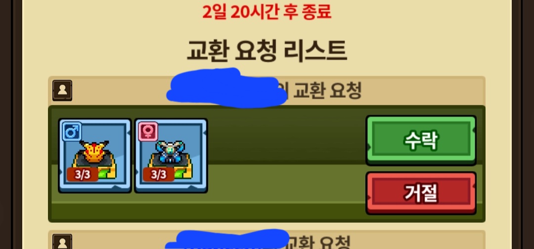 라떼곤 올렸는데 교환요청왔어요 베리스는 남자 있고 황포리는 없습니다 교환 할까요?