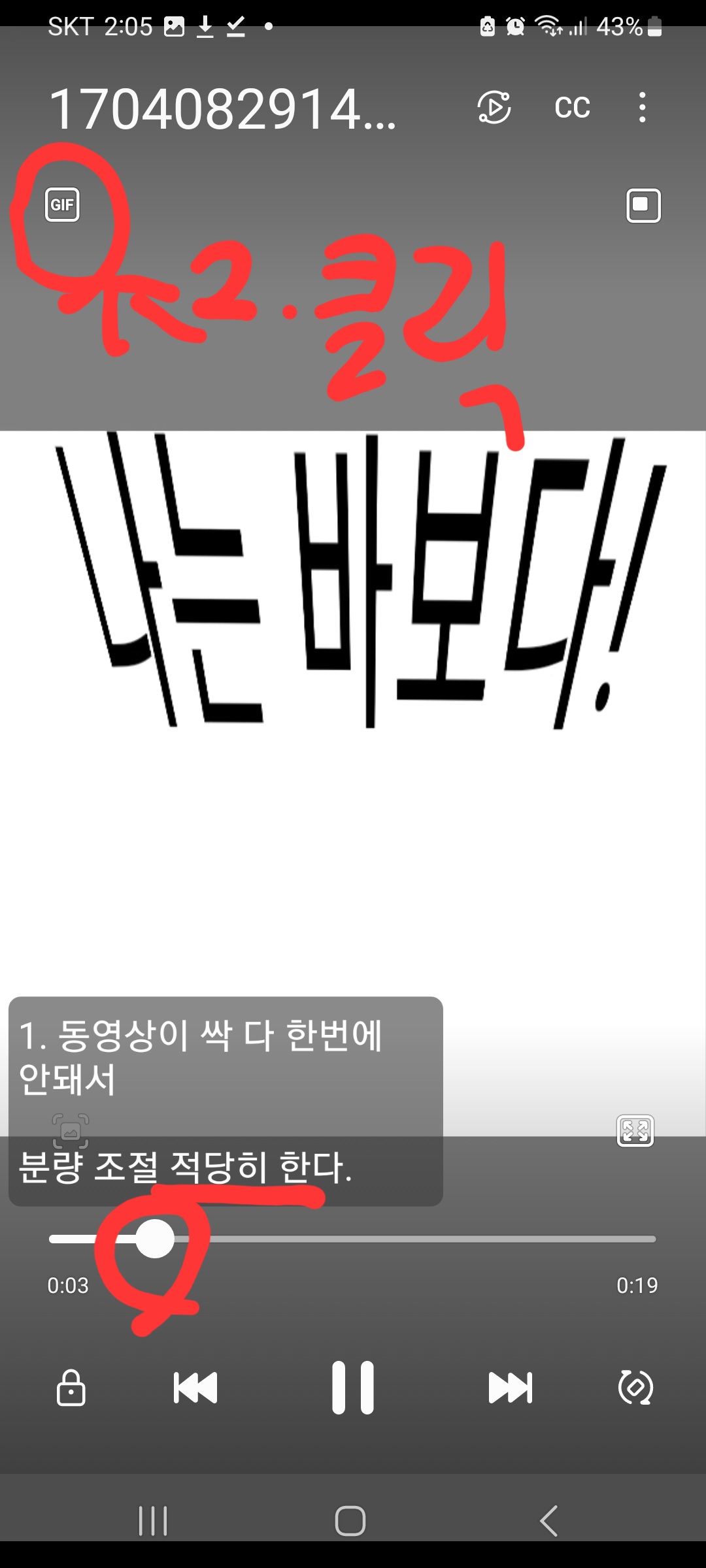 갤러리에서 커뮤에 올릴 동영상있죠? 그걸 GIF로 만들어야해요.