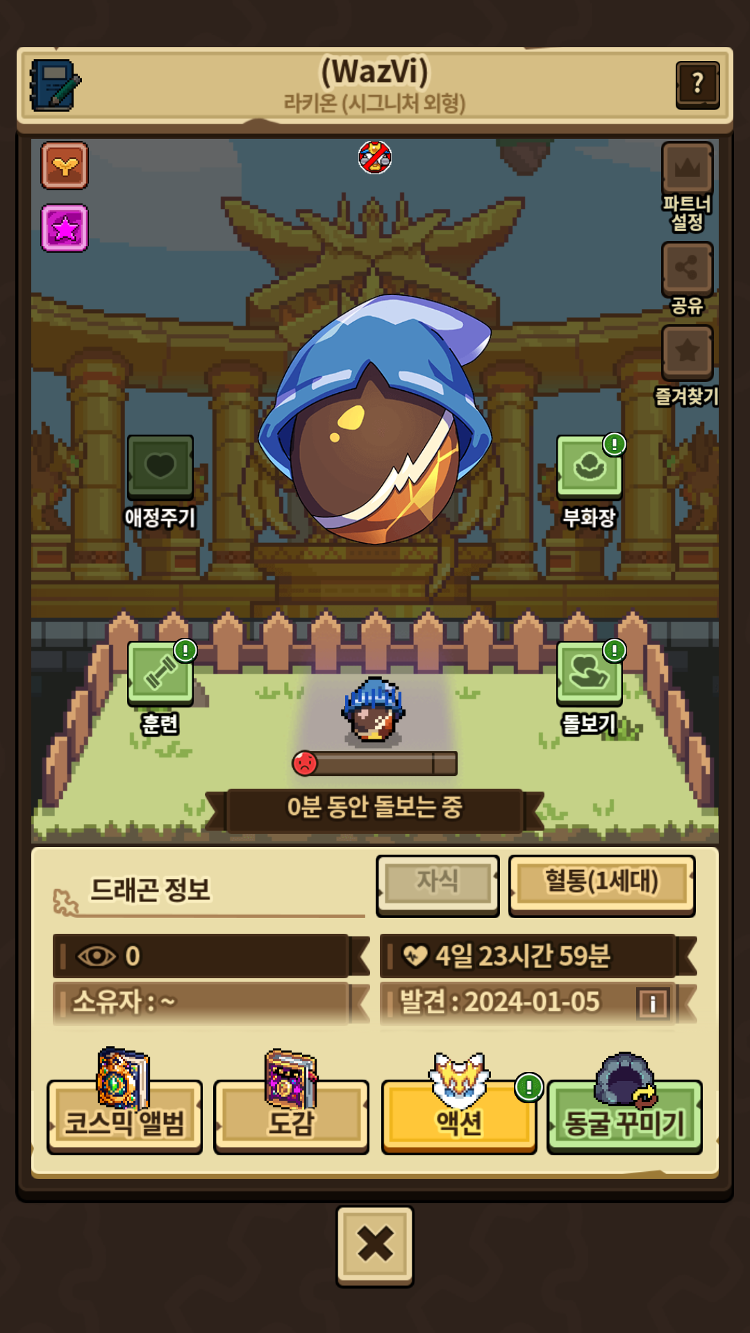 알 → 성체 바로 되는 매우 특이한 드래곤 외형이라, 성격작 하는 데 꽤 제한이 있어서, 이쁘면서도 짧은 시간에 하기 쉬운 외향적인 성격으로 했습니다. 너무 귀엽네요.