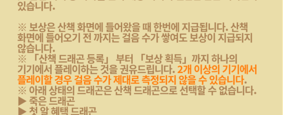 “보상 수령 시” “걸음 수”만큼 드래곤이 추가로 성장한다고 합니다.