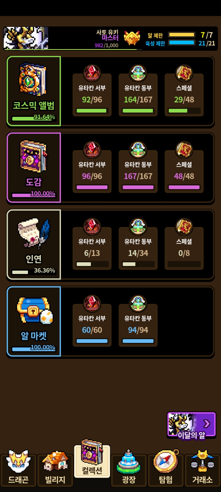 드디어 100%를 달성했습니다. 코스믹 앨범 100%는 큐피프렌드 때문에라도 불가능하지만, 이렇게라도 채워서 다행인 것 같습니다.