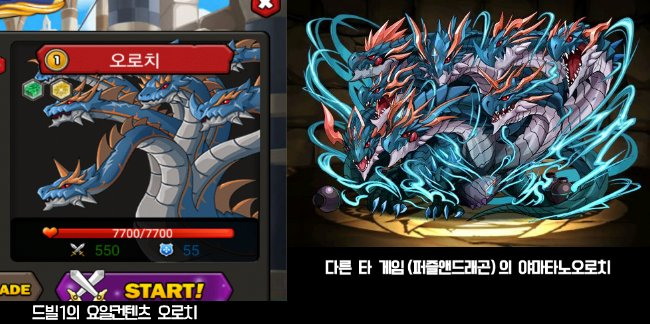 지나가다가 다른 분이 작성하신 글을 봤는데 되게 얘네들이 되게 비슷해 보이더라고요. 드빌이 표절한 것 같은데, 단순히 여러분의 의견은 어떤지 궁금해서 글 작성해봅니다. 드빌 시리즈 용이 뭔지랑 타겜 용이 뭔지는 그림체보고 아실 거니 설명 안해드려도 될 것 같네요. 비슷해 보이시나요?