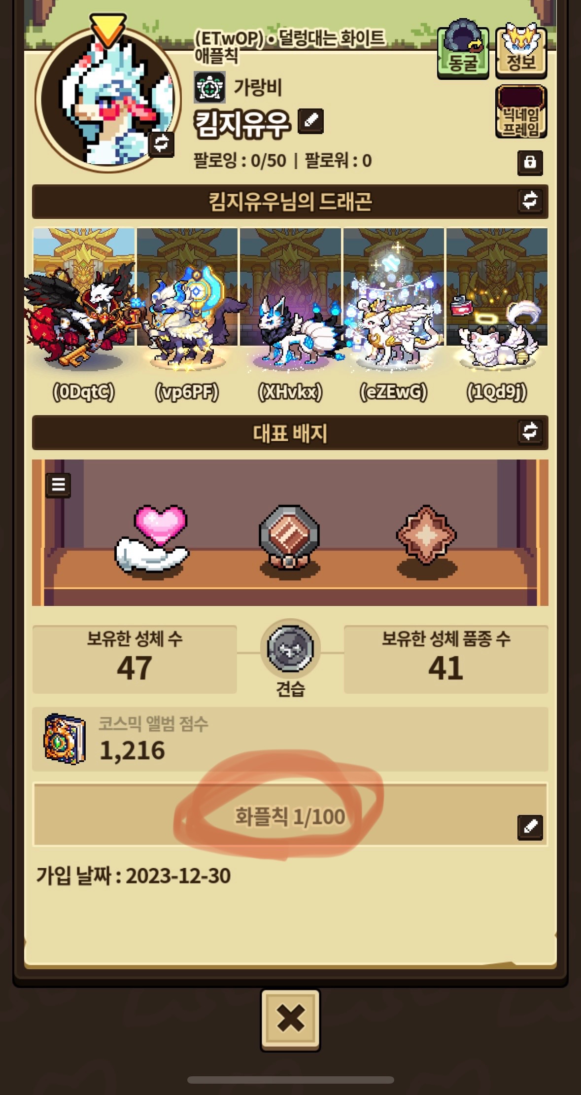 전 화플칙 100마리 모으기 랍니당 ,,!!