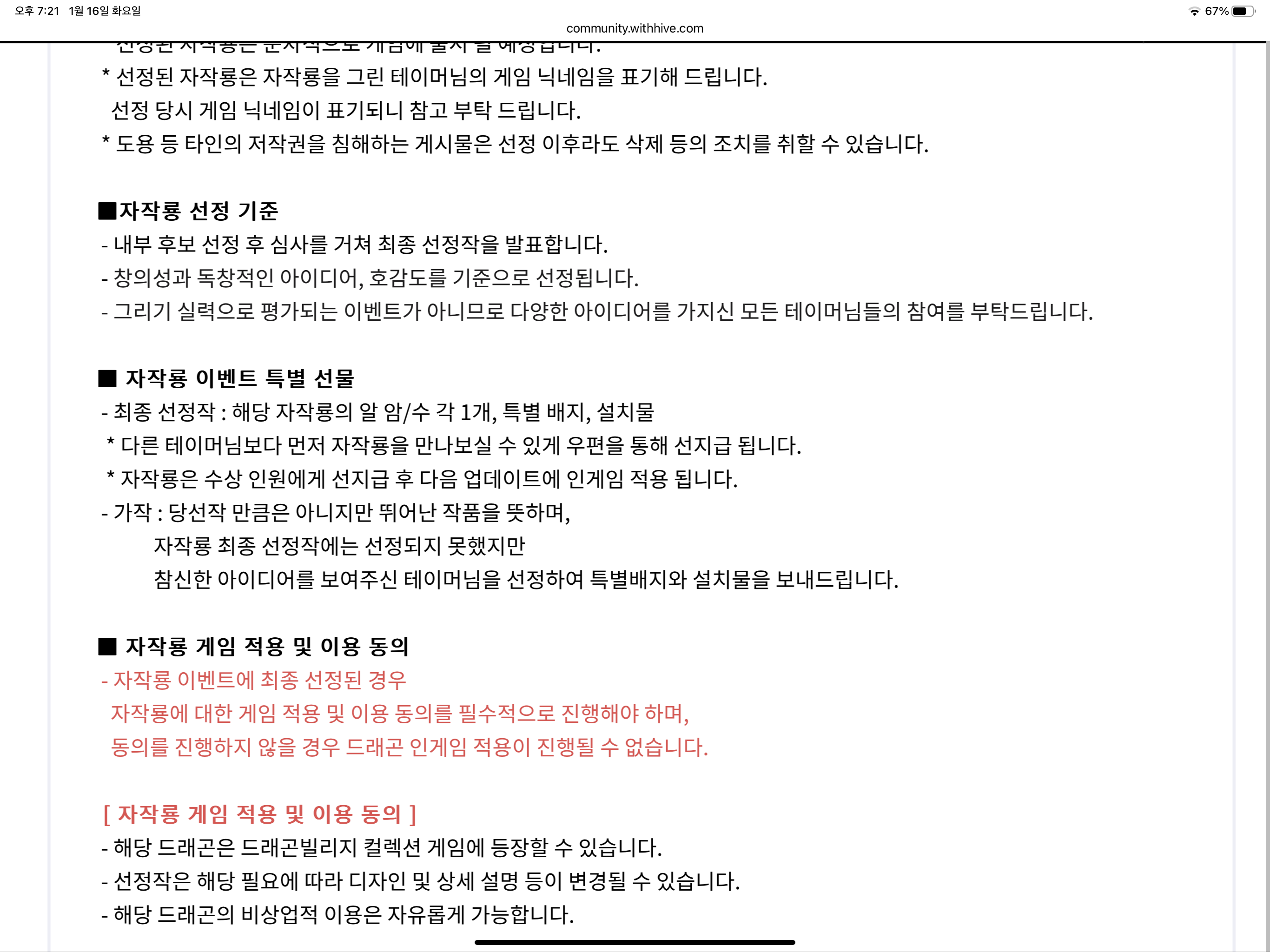 자작룡 이벤트에 대해서 제 할 말 좀 하겠습니다. 특히나 자작룡 이벤트의 당선 기준에 대해 말하고자 합니다.