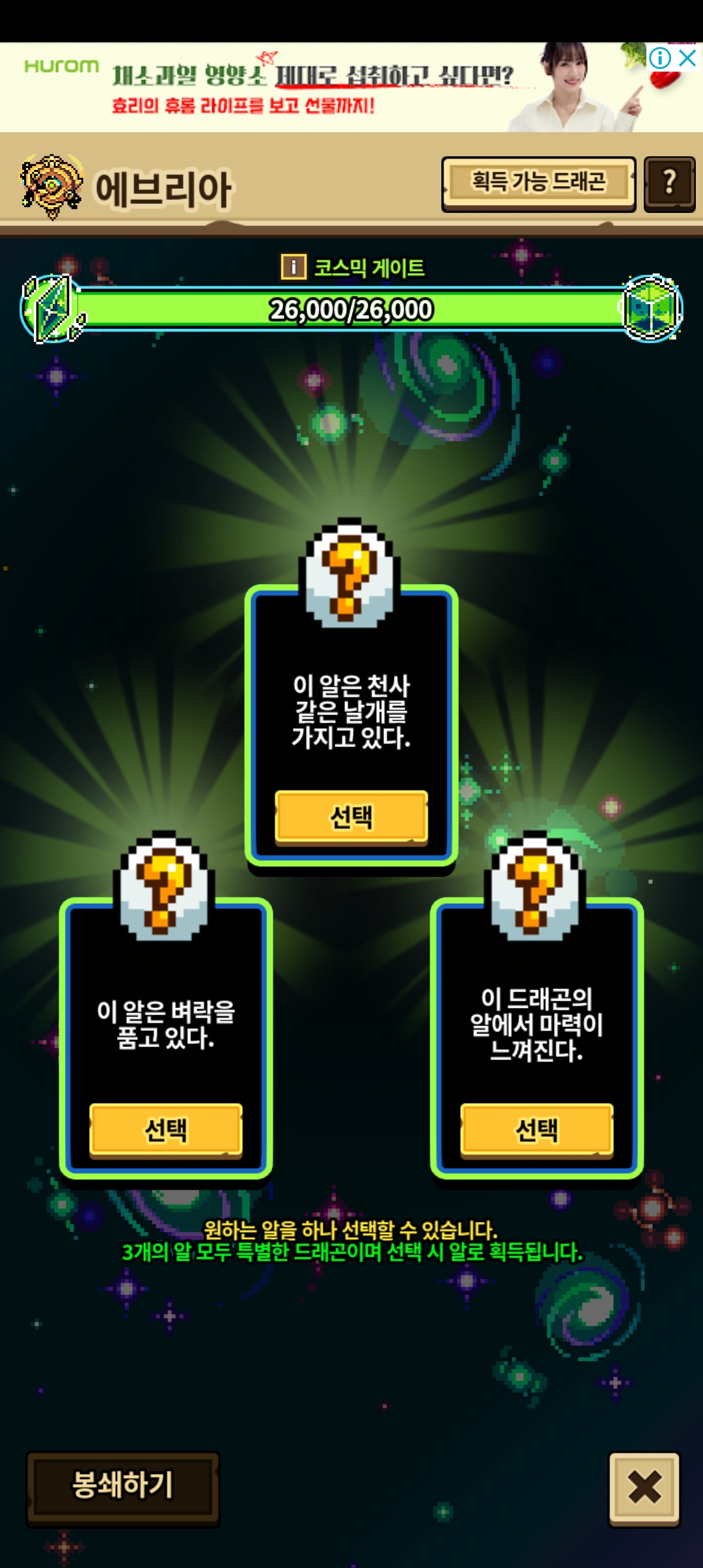 뭐 고를까요?(어떻게 코스믹 게이트 전까지 한번도 안뜨지...)