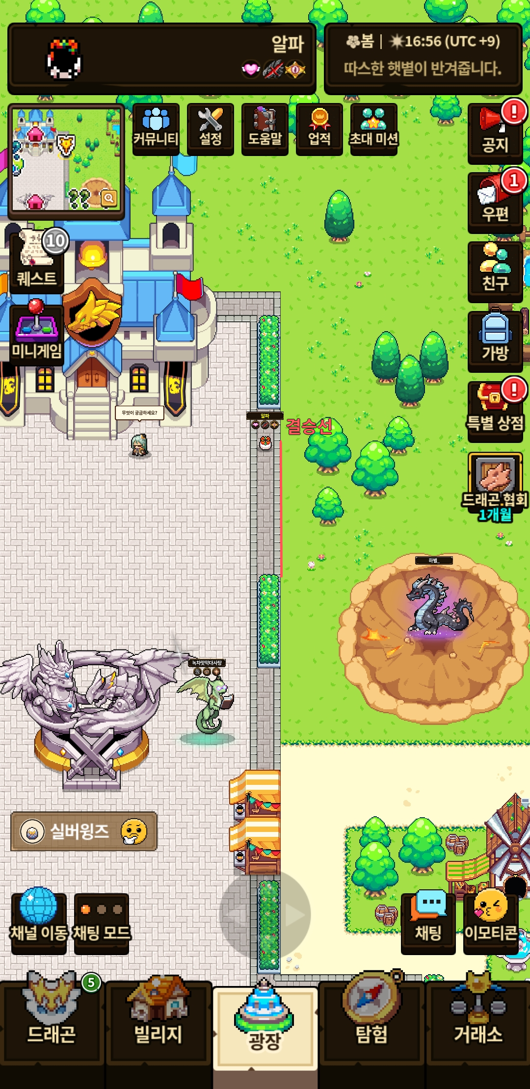 드래곤알과 해치,해츨링 그리고 성룡들이 경주하러 모이게될 채널 [ ] 그리고 시간은 [6월 18일 17:00시] 바로 이시각!!