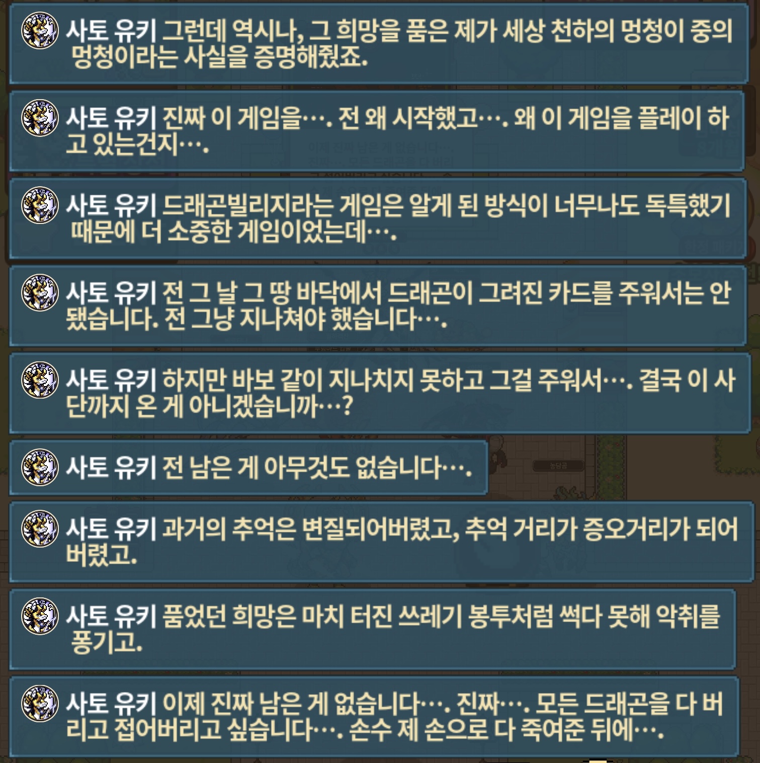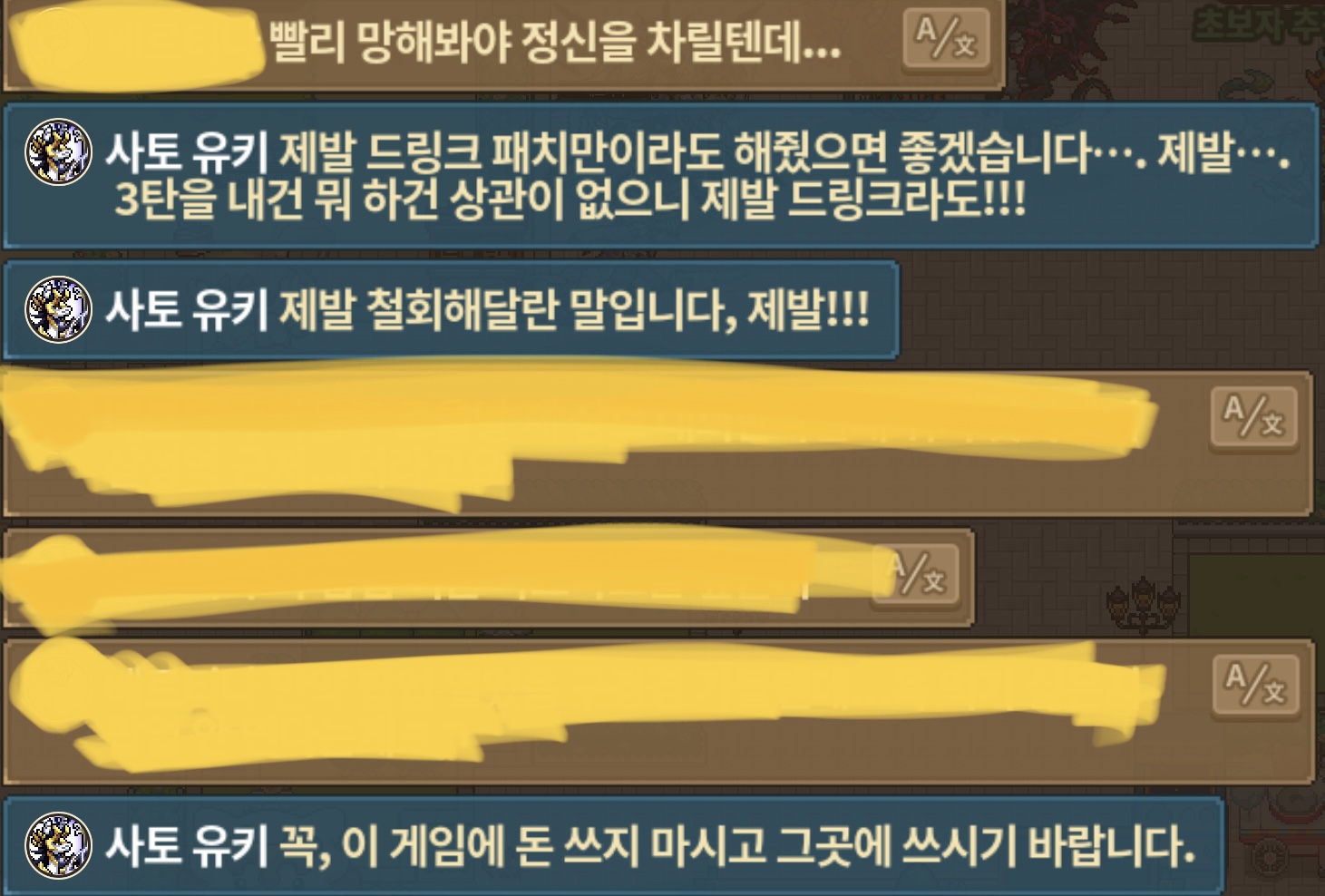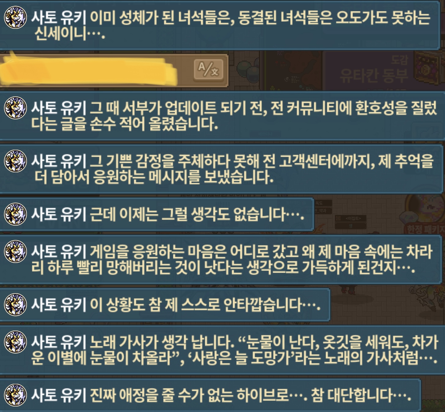 이 유저가 이 게임에 대한 애정을 내려놓고 남기는 한탄. (한국어 17채널 정모에서)