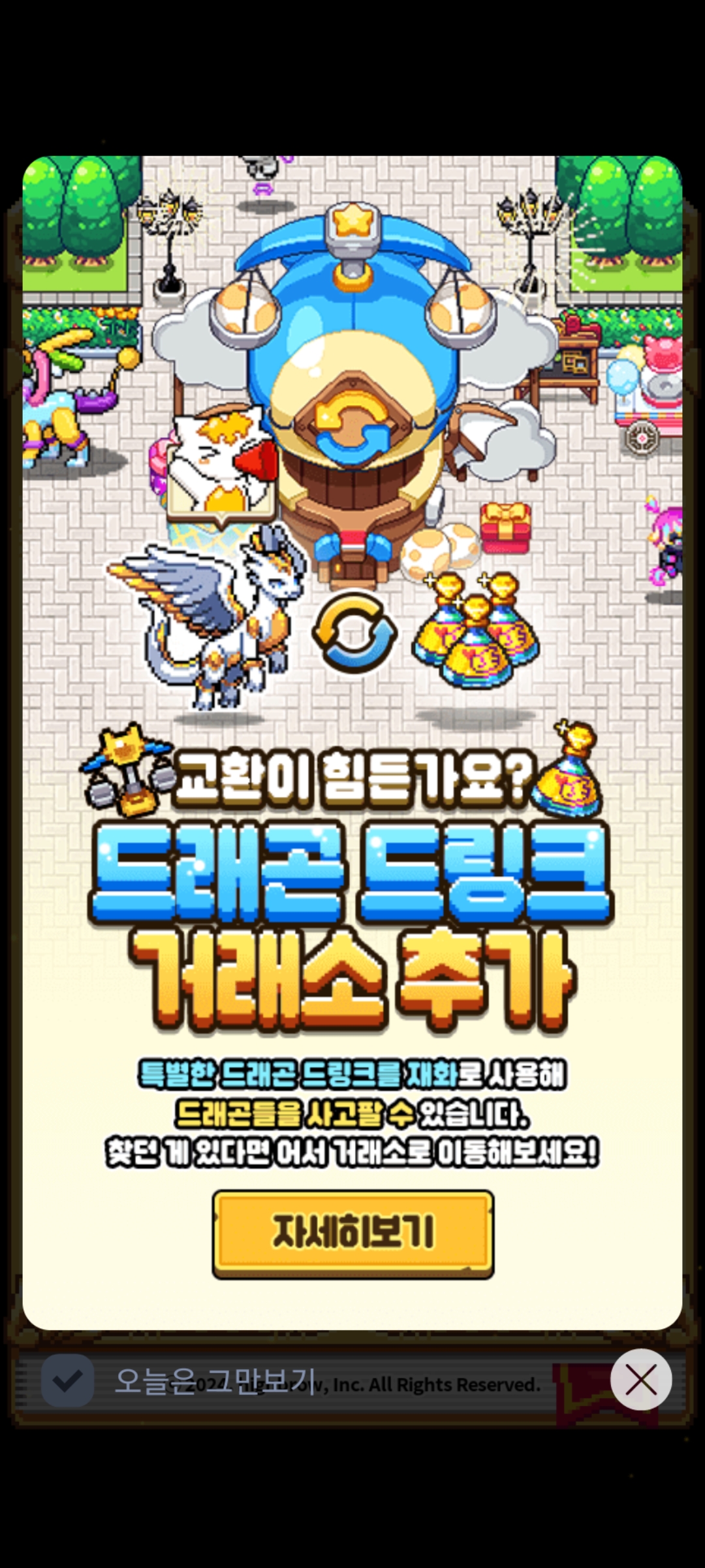무과금으로 교환하기 힘들면 과금해서 얻으라는말을 이렇게 대놓고 말하는데.. 아직 경제력없고 순수한 게임을 즐기는 잼민이들아 용을 얻고싶은 너희의 순수한 마음을 돈으로 짓밟는 이게임에 얼마나 상실감이 크겠니..형들이 이 게임을 지켜주지못해 미안하다.