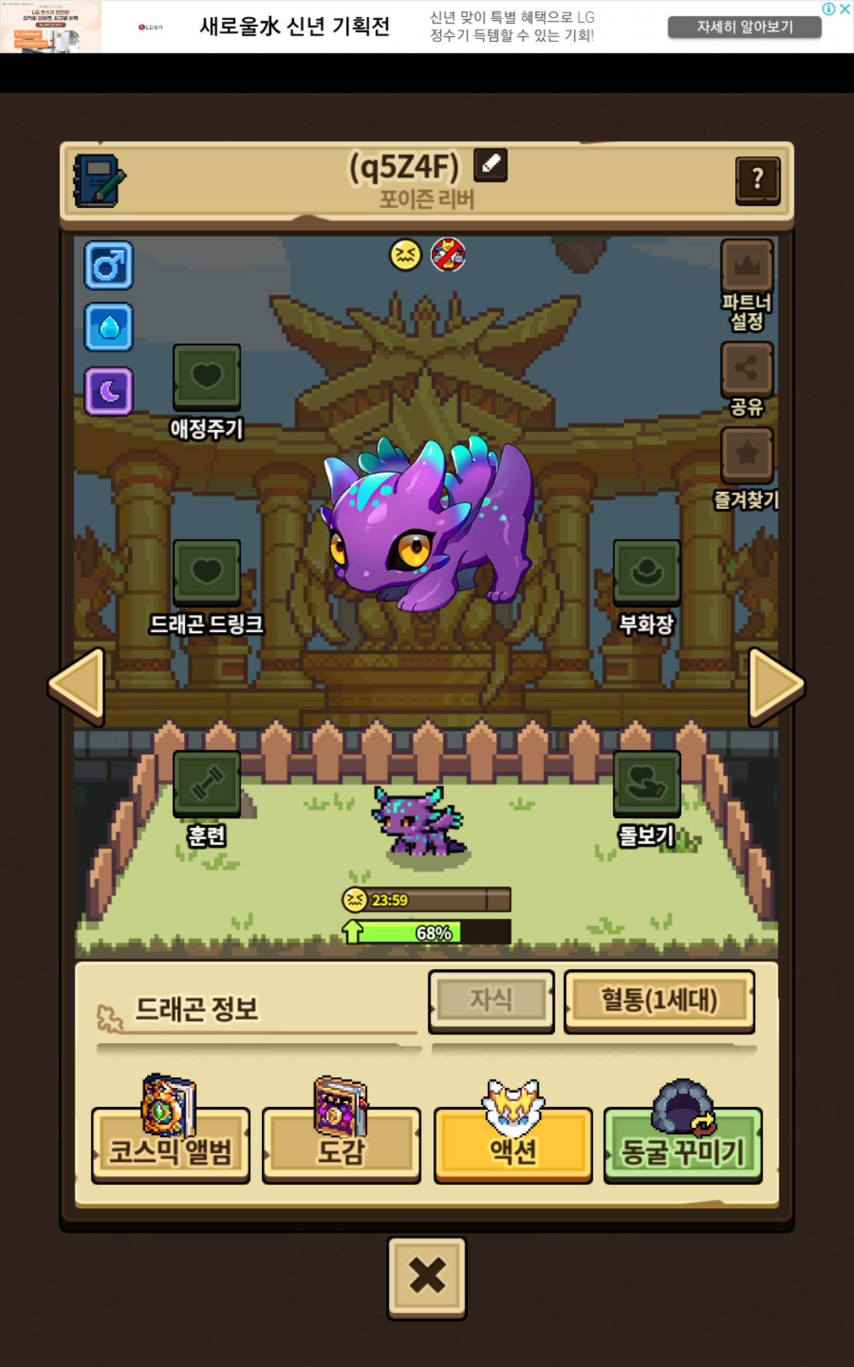 마비 쓰기 전에는 성장 게이지가 100% 였는데 쓰니까 68%가 되어 있네요.