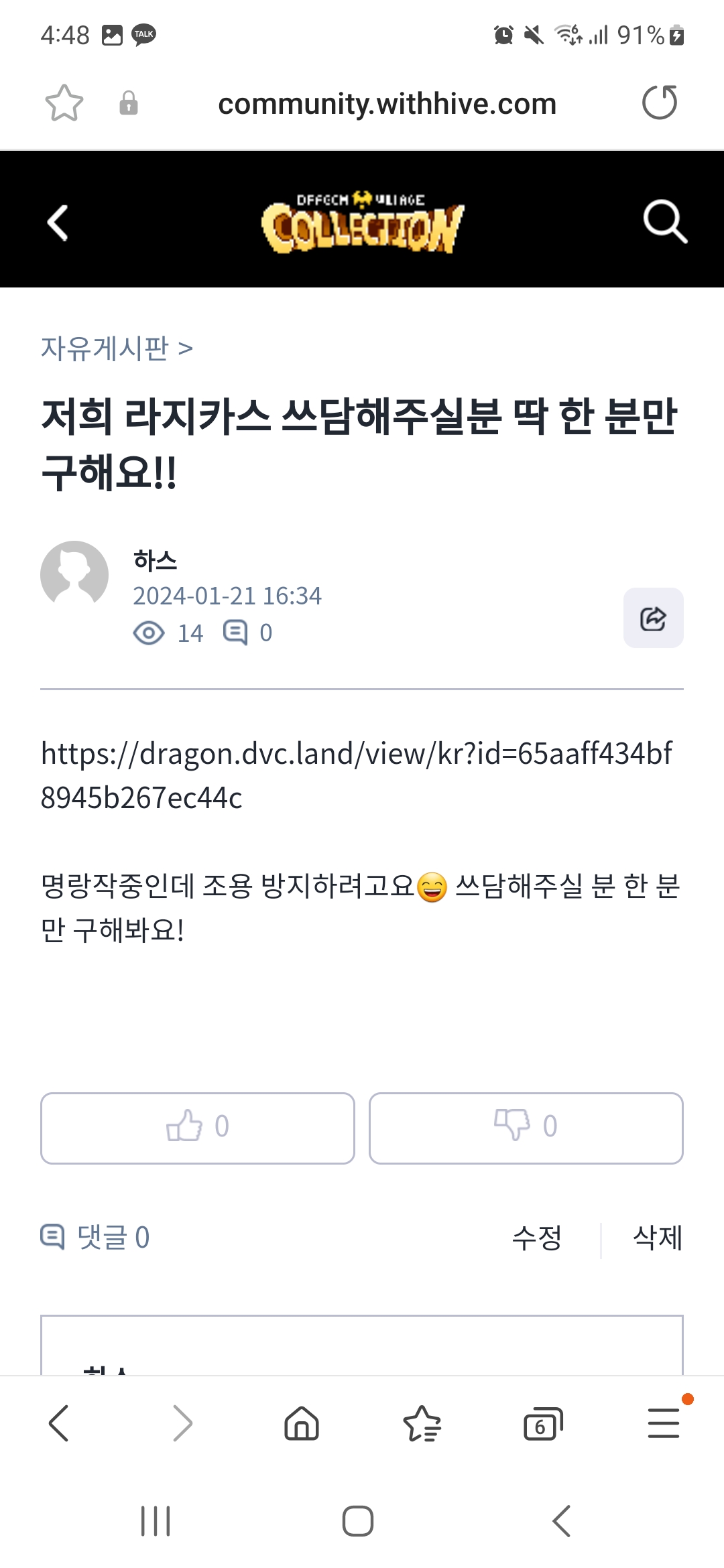 라지카스 명랑작 한다고 쓰담해달란 글 올렸는데