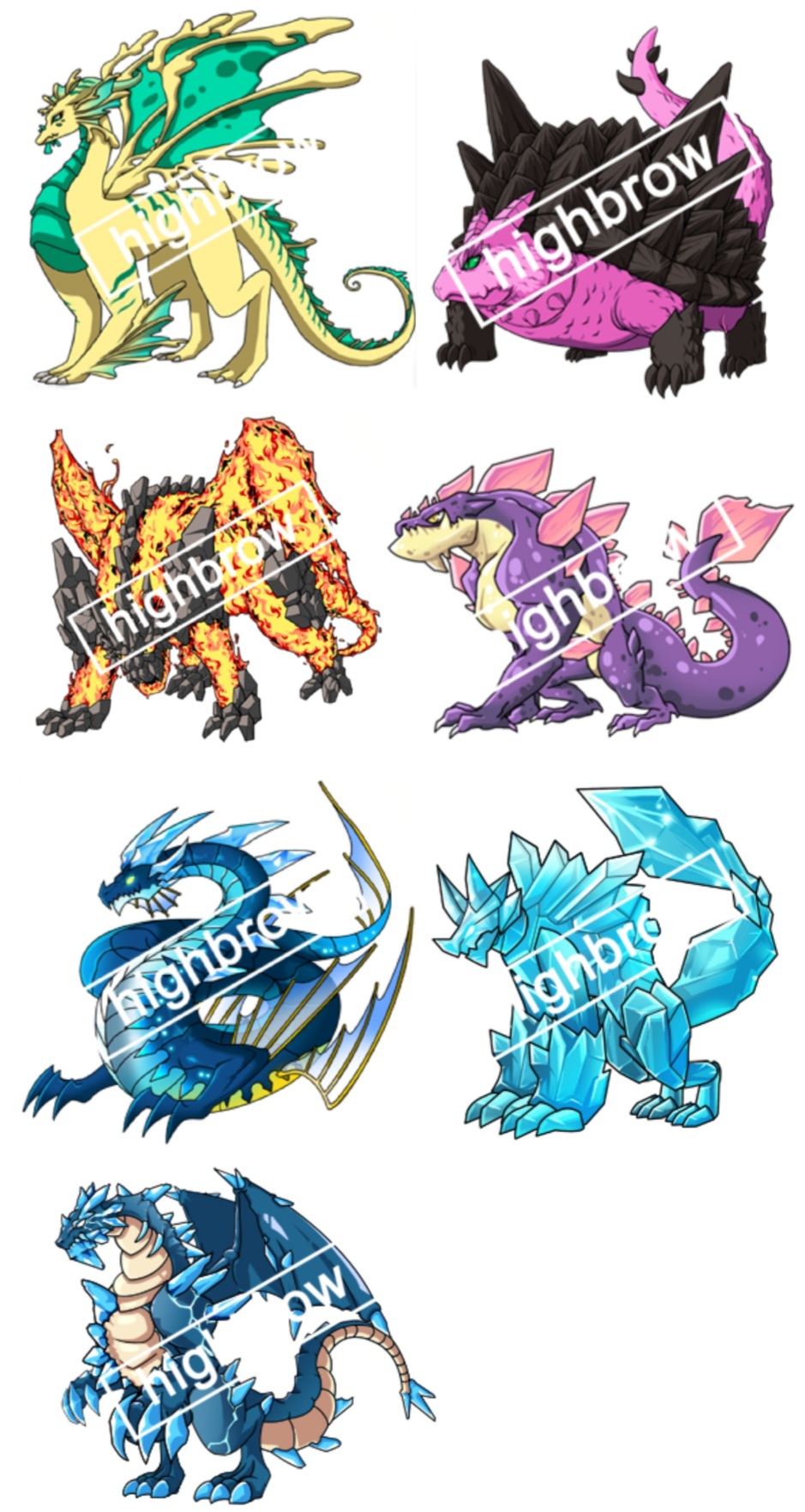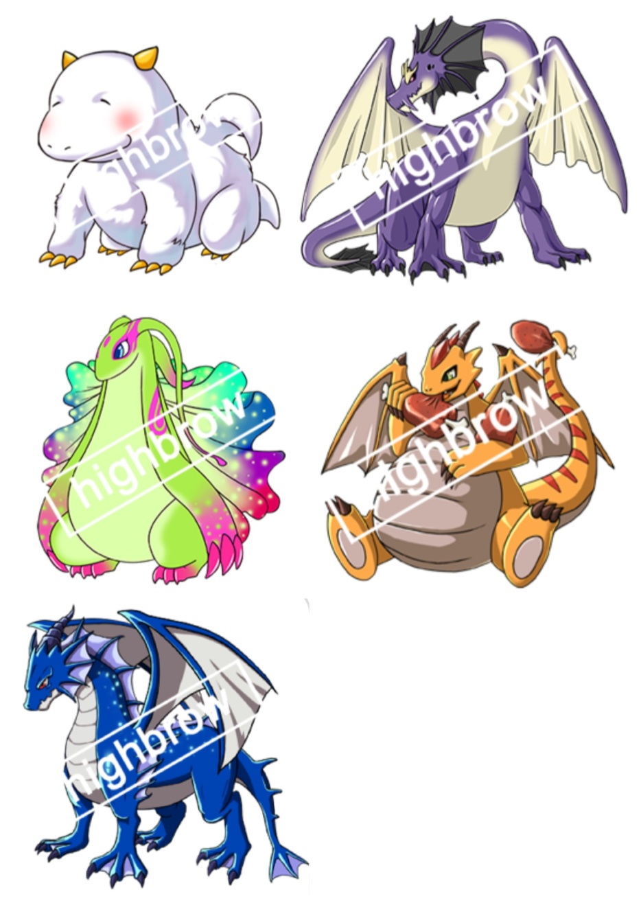 컬렉션에 곧 등장할 가능성이 높다고 생각한 드래곤들을 그룹으로 묶어서 모아보았다. 그중 원작자가 따로 존재하는 드래곤은 원작자가 컬렉션에 자작룡으로 등록해서 뽑혀야 나올 수 있기 때문에 목록에서 배제하였다.
