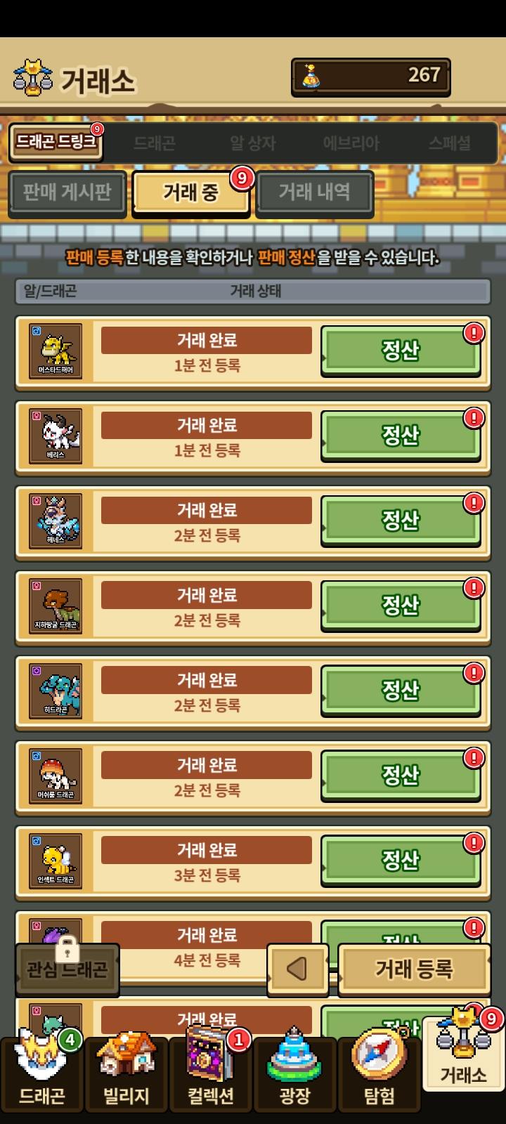 돌보기 풀로해서 5시간동안 방치 (거래제한을 풀기위함/ 남은시간 2일인 알에게 풀돌봄 5시간이면 부화하고도 남을시간)