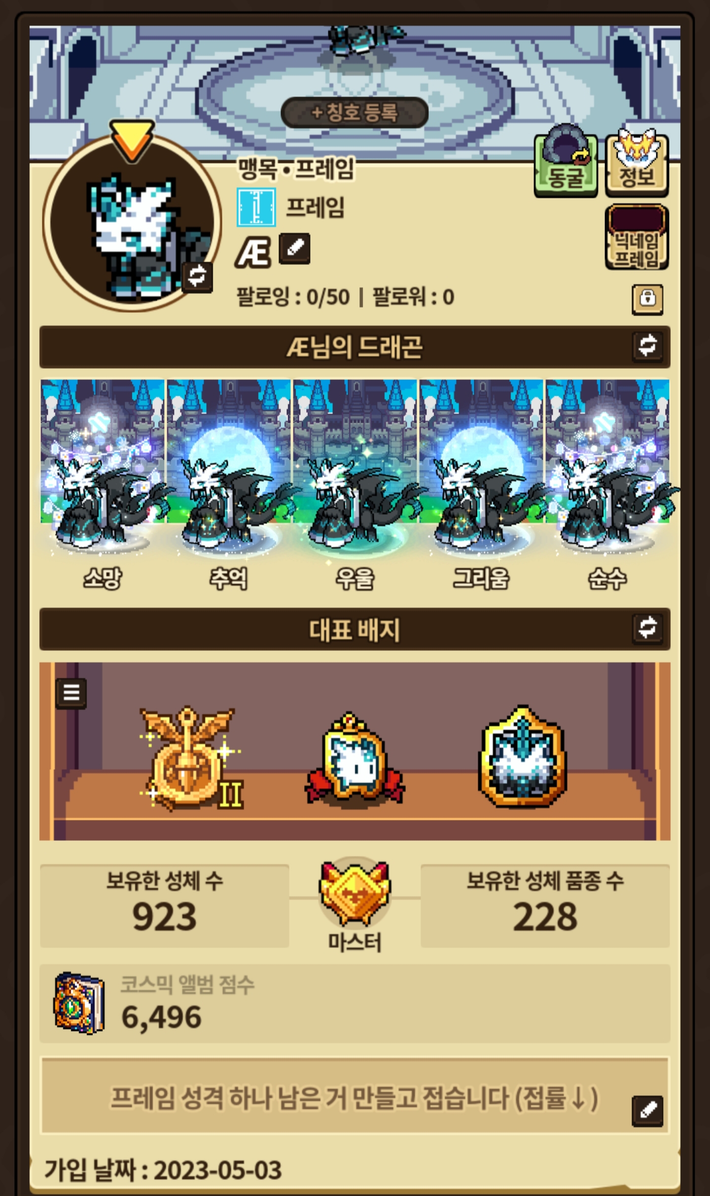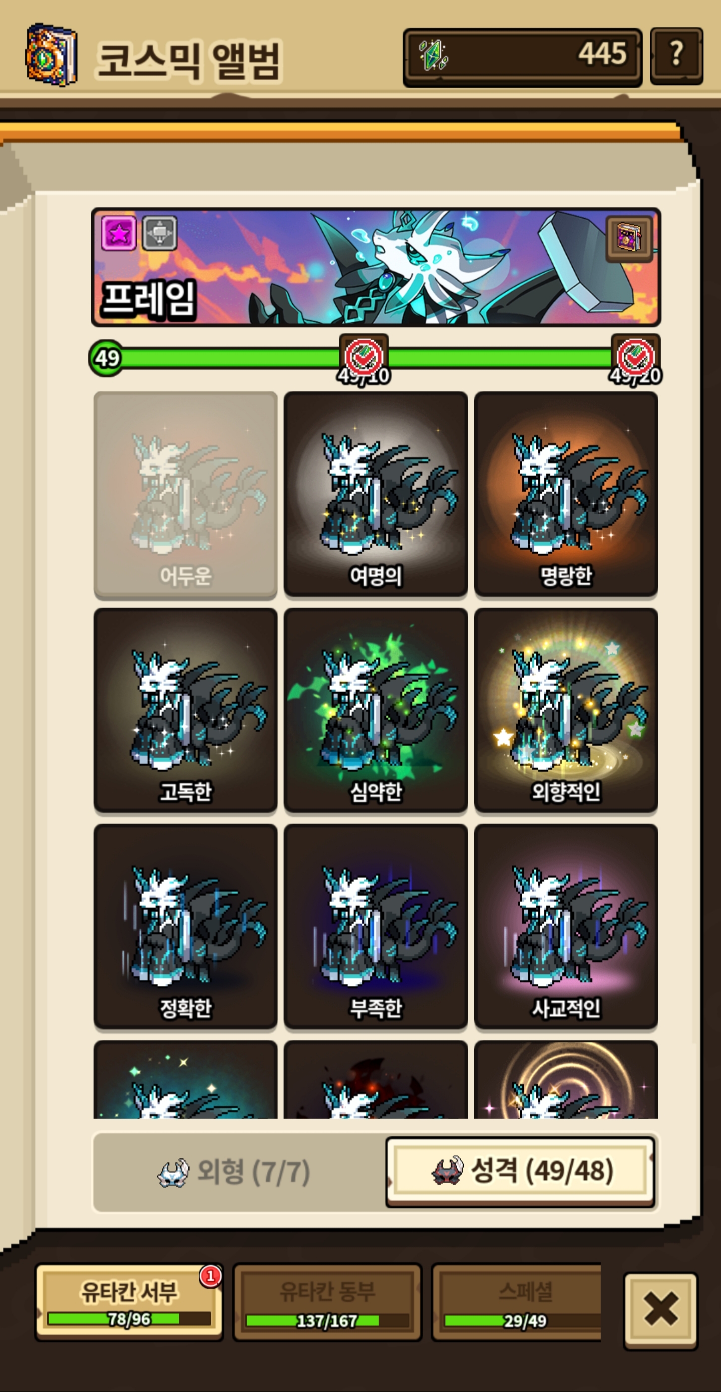 아직 용 코스믹 성격 올클 같은 칭호나 뱃지는 없나보네요... (올클 아직 안 했지만)