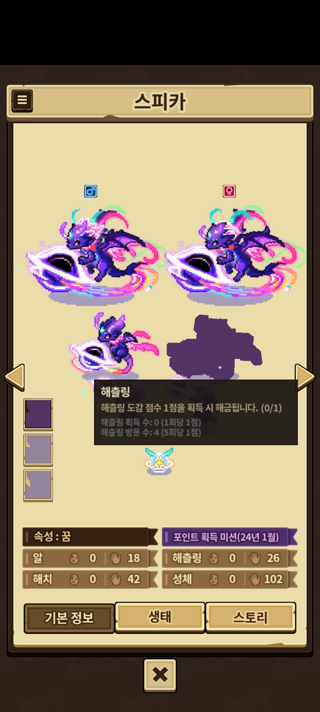 1세대 스피카 해츨이 안보여요 각각 한마리씩 남았는데..