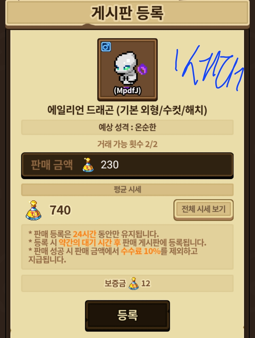 1세다 에일리언 해치를 230에 올리면 싸고 팔리나요?