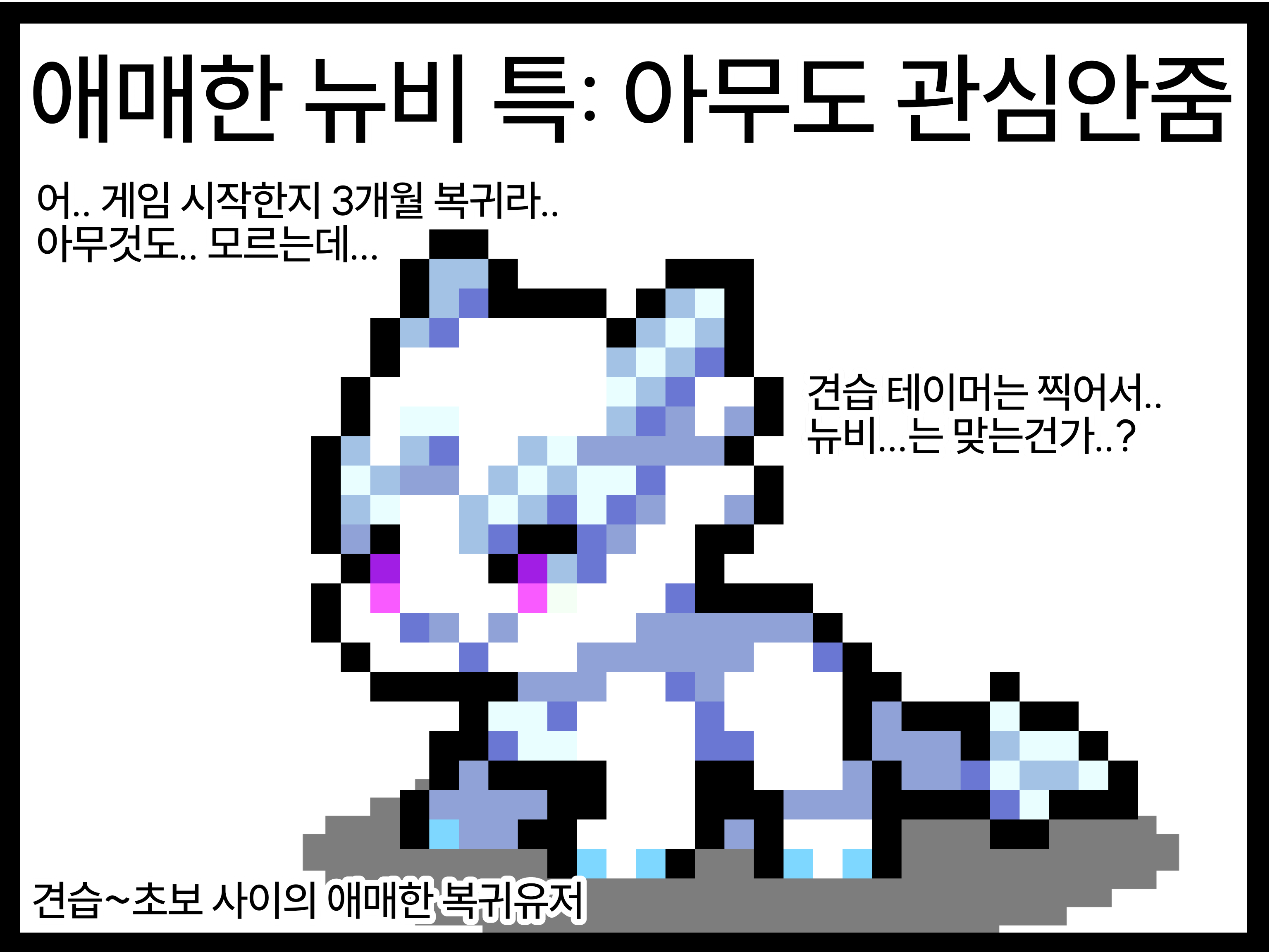 그러게.. 아무도 관심 안주고 스스로 해야하고 그나마도 운빨 요소와 현질 요소가 작용하는 살벌한 듭컬 세계에서는 사실 애매한 뉴비가 진정한 뉴비 아닐까요?