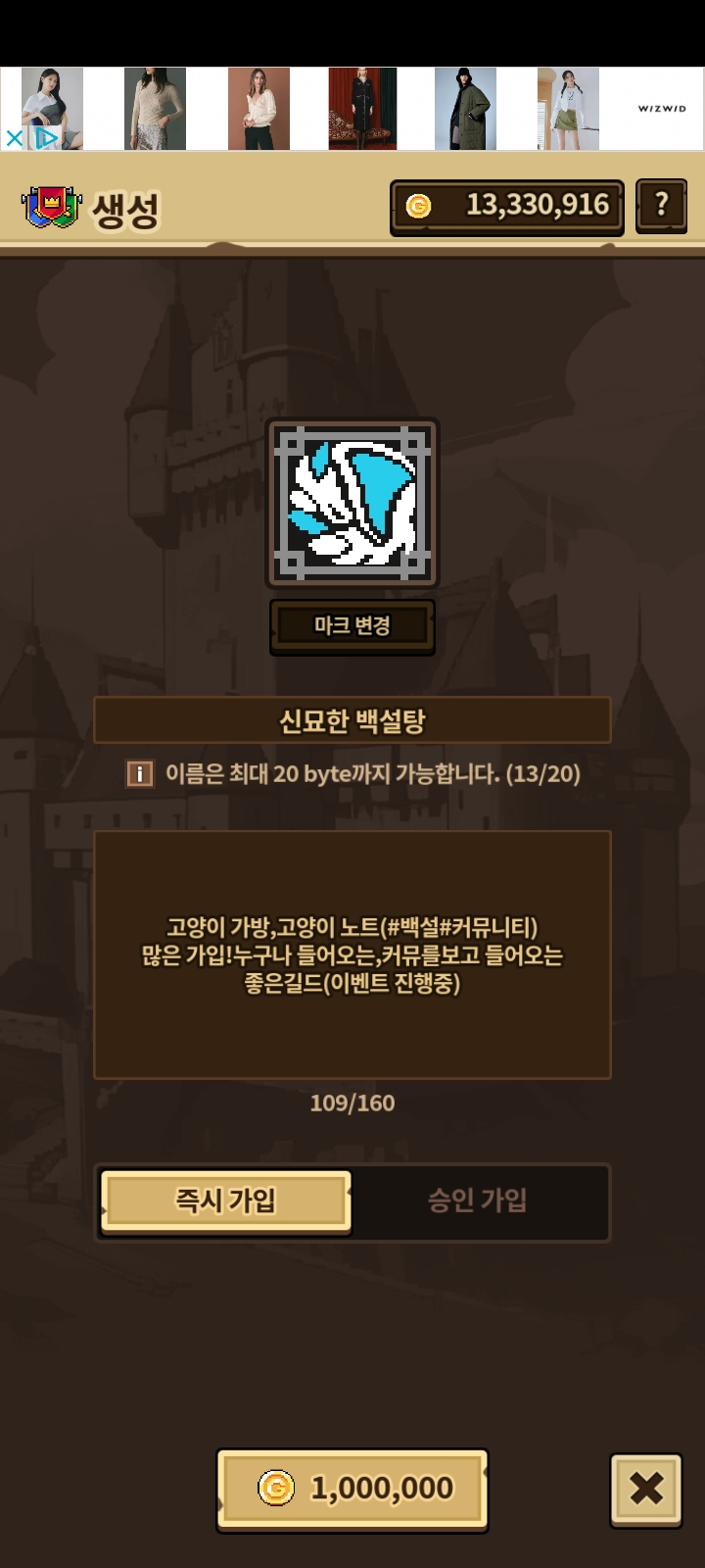 안녕하세요 백설입니다! 제가 길드를 만드려합니다!