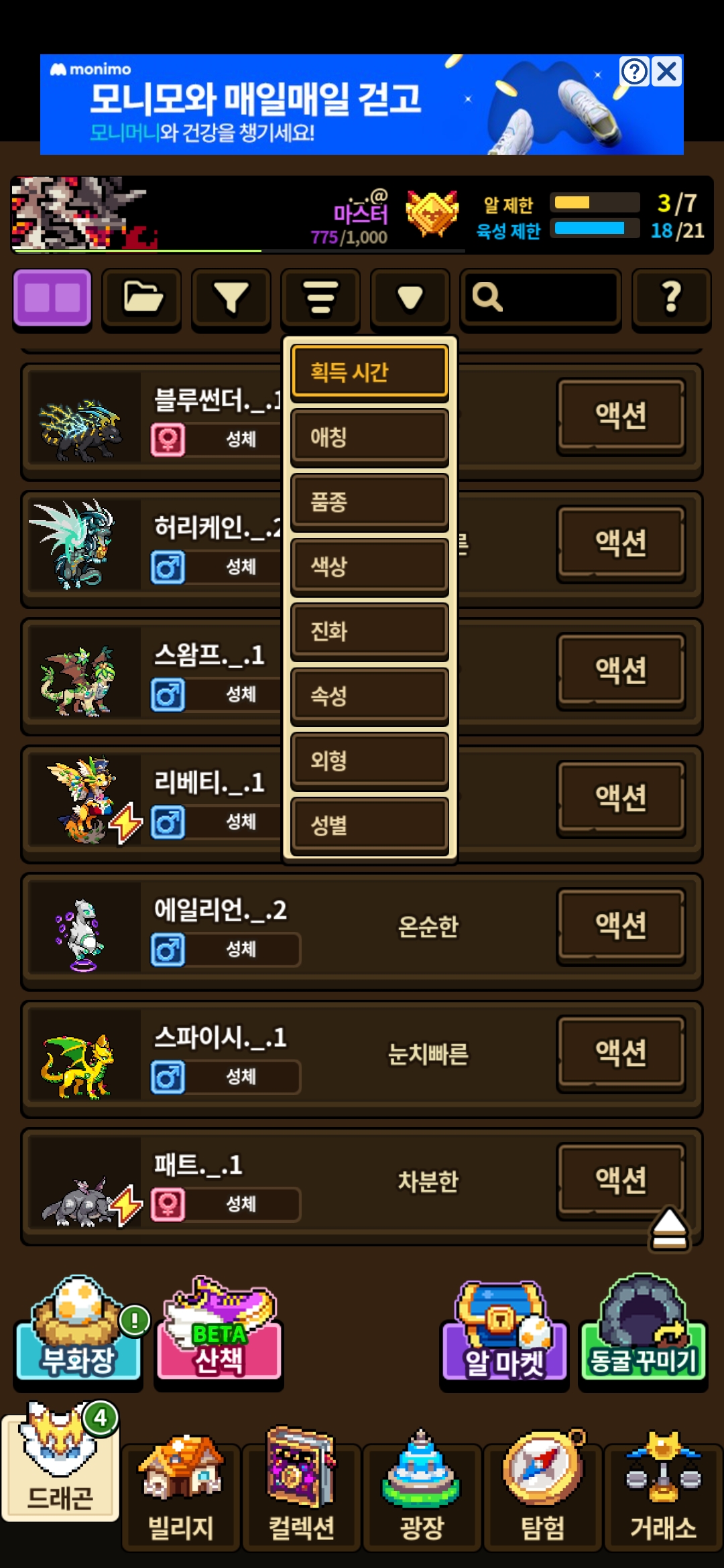 심지어 얘는 5월 11일에 주운 애라 표시되어있고 성장시간도 불규칙한걸 보니 처음 얻은 용은 아닌데 왜 맨 밑에 있는거죠..??? 그리고 전 5월 12일에 가입했는데 어떻게 5월 11일에 얻을 수가 있고요??? 무슨일이죠,,