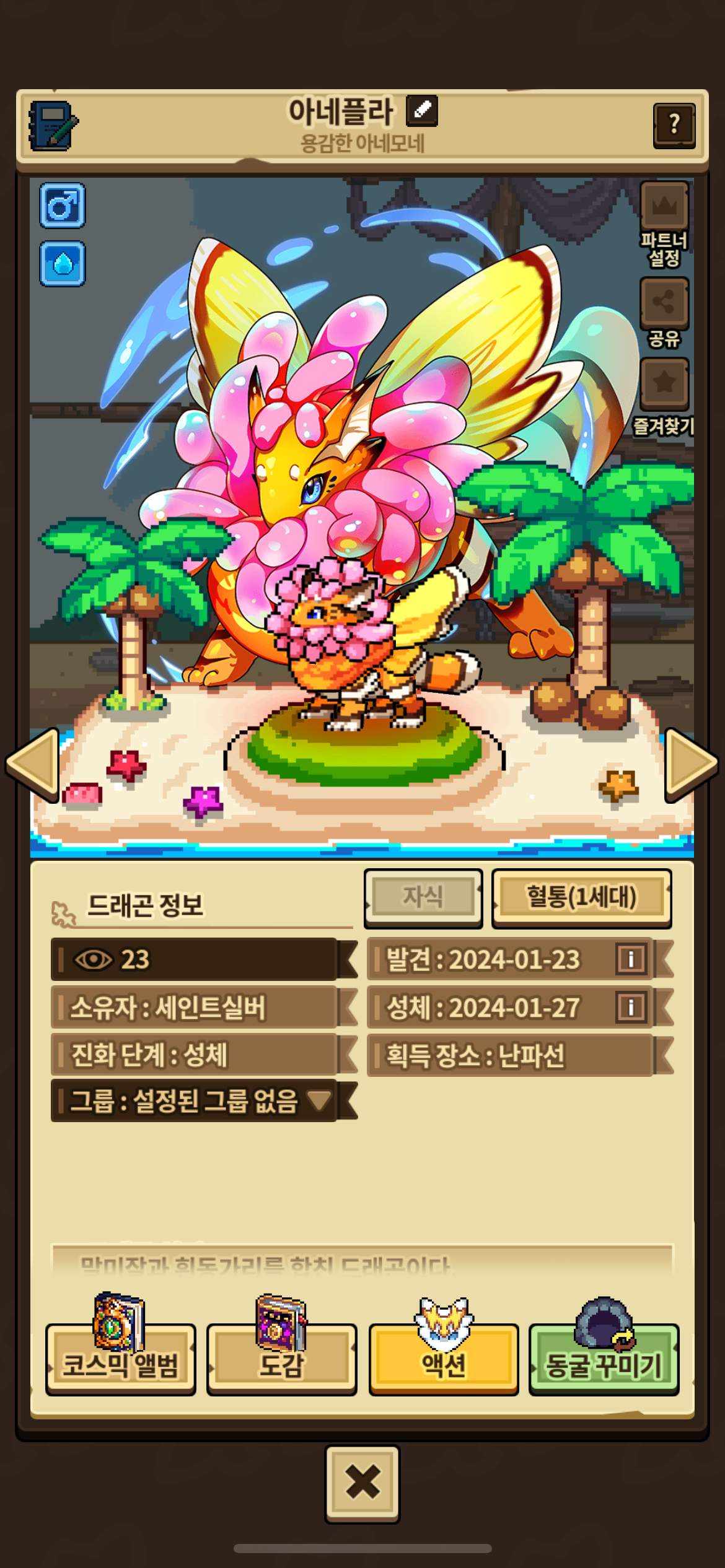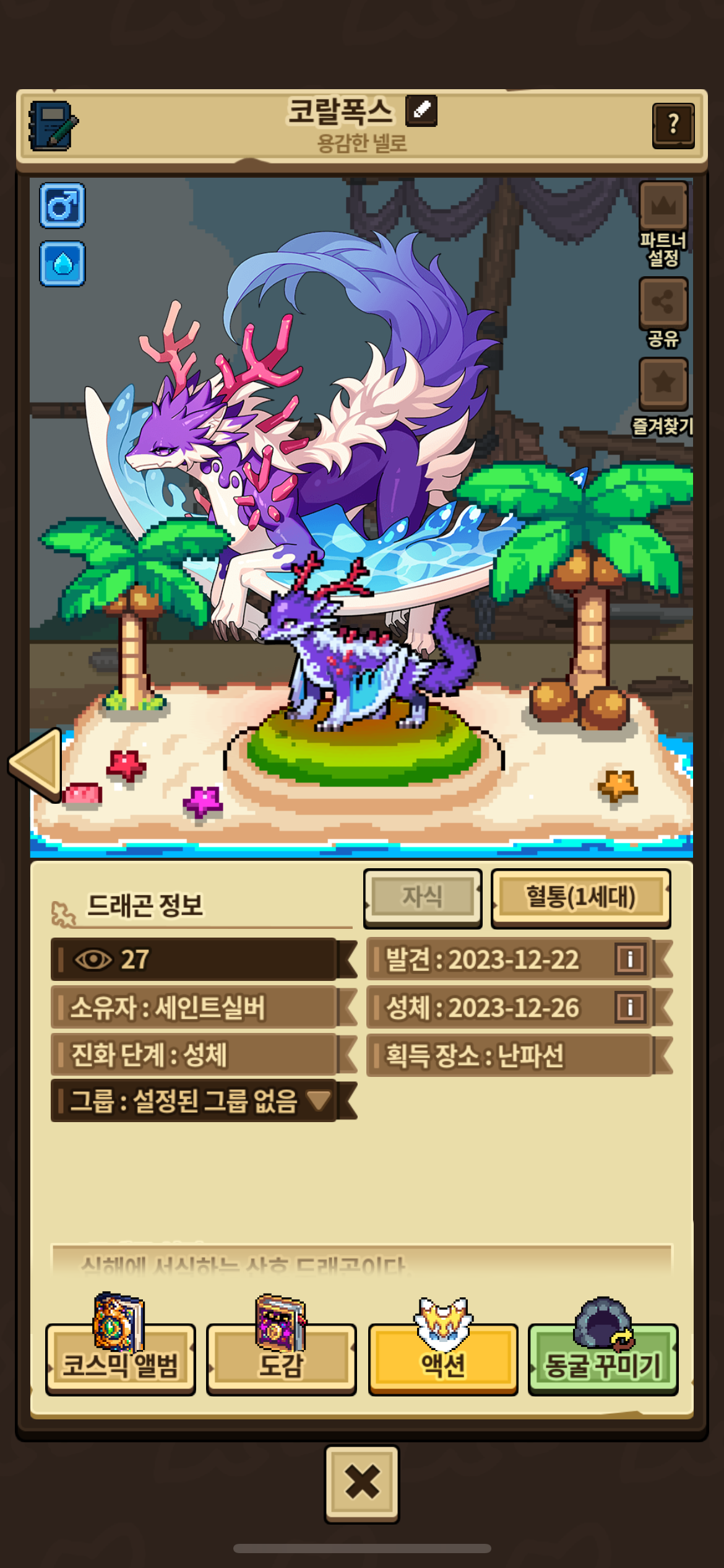 산호초 테마에 배치할 드래곤인 넬로랑 아내모네 많이키우고 있는데 첫번째는 별빛 산호초일것같네요