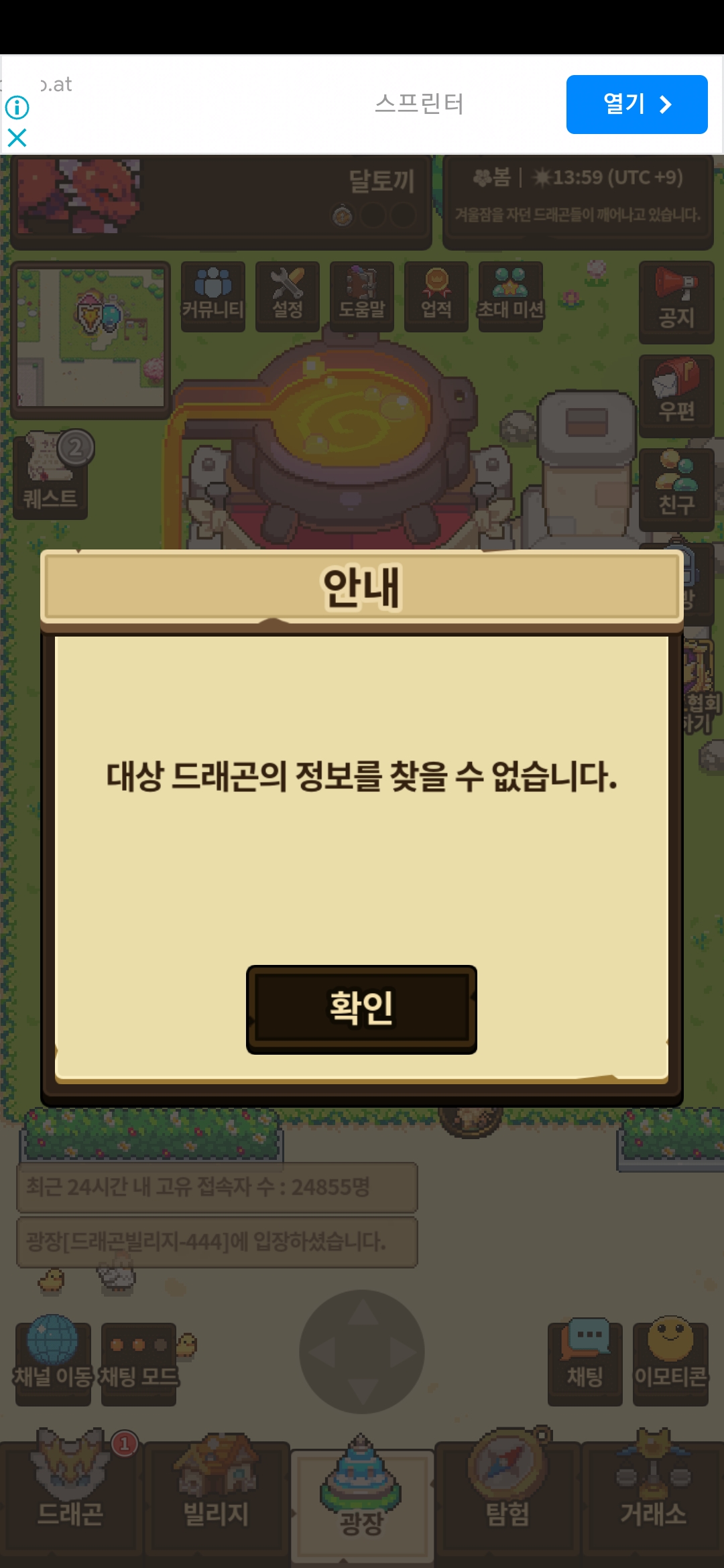 화속성 드래곤 성룡 진화 시키고 했는데 계속 이렇게 뜨네요
