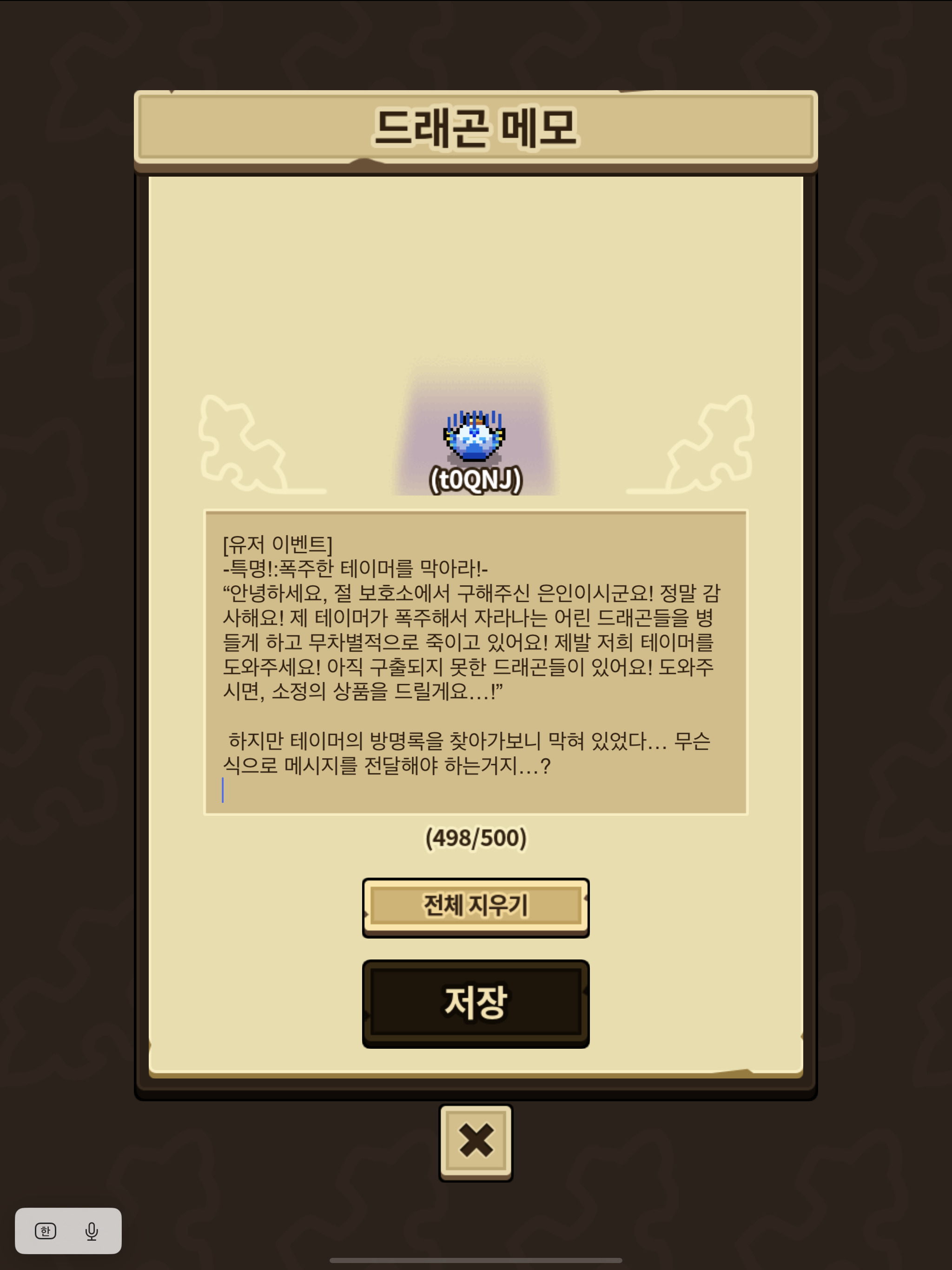 “ 현재 보호소에는 성공적으로 죽지 않고 탈출한 스쿠룸, 유리온, 틸키, 라그나로크 총 4마리의 드래곤들이 여러분의 손길을 기다립니다.